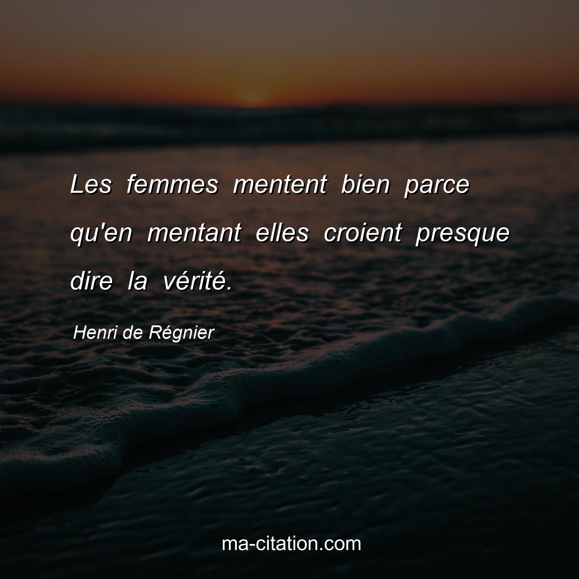 Citation sur la vie de Henri de Régnier :Les femmes mentent bien parce qu'en mentant elles croient presque dire la vérité.