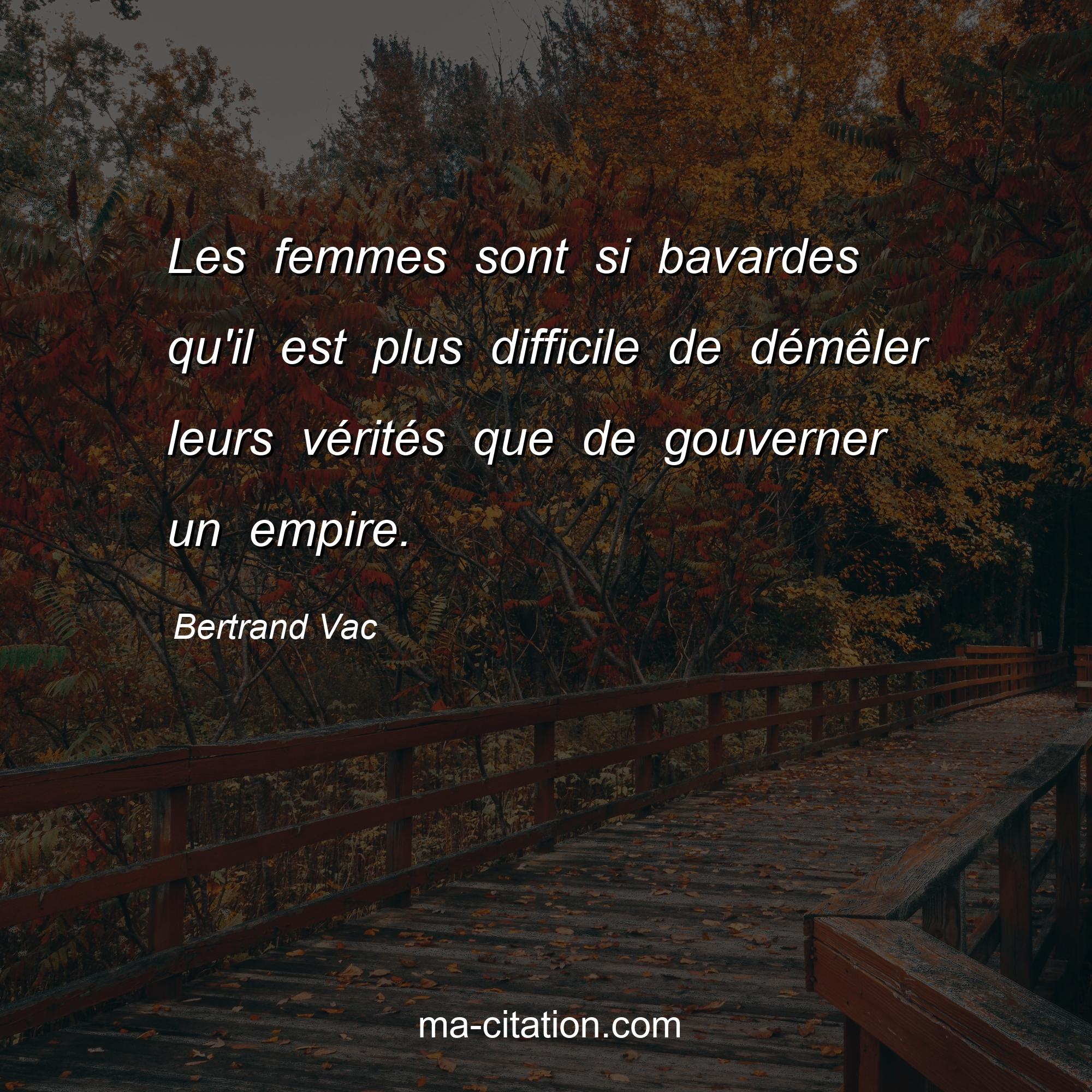 Citation sur la vie de Bertrand Vac :Les femmes sont si bavardes qu'il est plus difficile de démêler leurs vérités que de gouverner un empire.