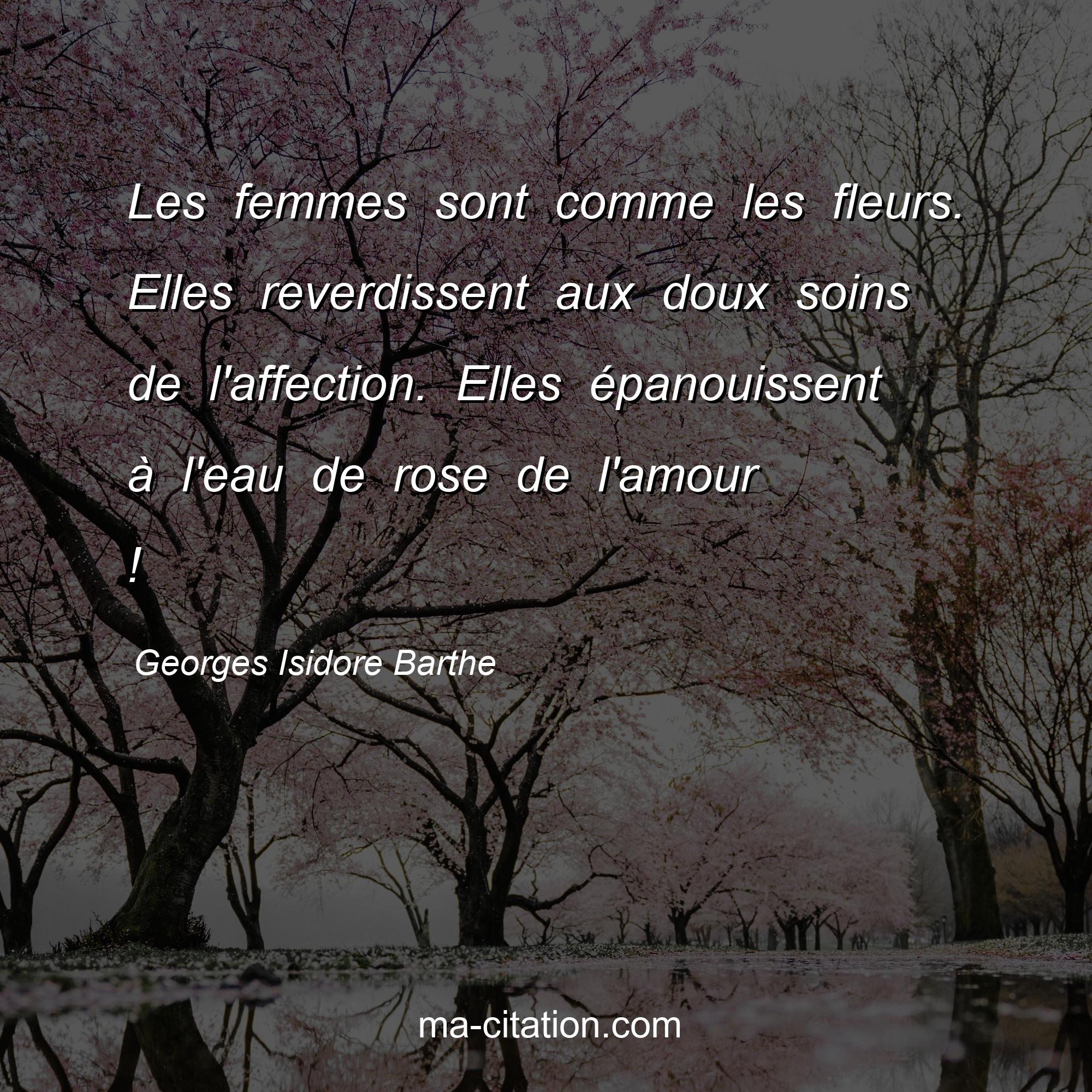 Georges Isidore Barthe est l'auteur de la citation sur la vie "Les femmes sont comme les fleurs. Elles reverdissent aux doux soins de l'affection. Elles épanouissent à l'eau de rose de l'amour !".