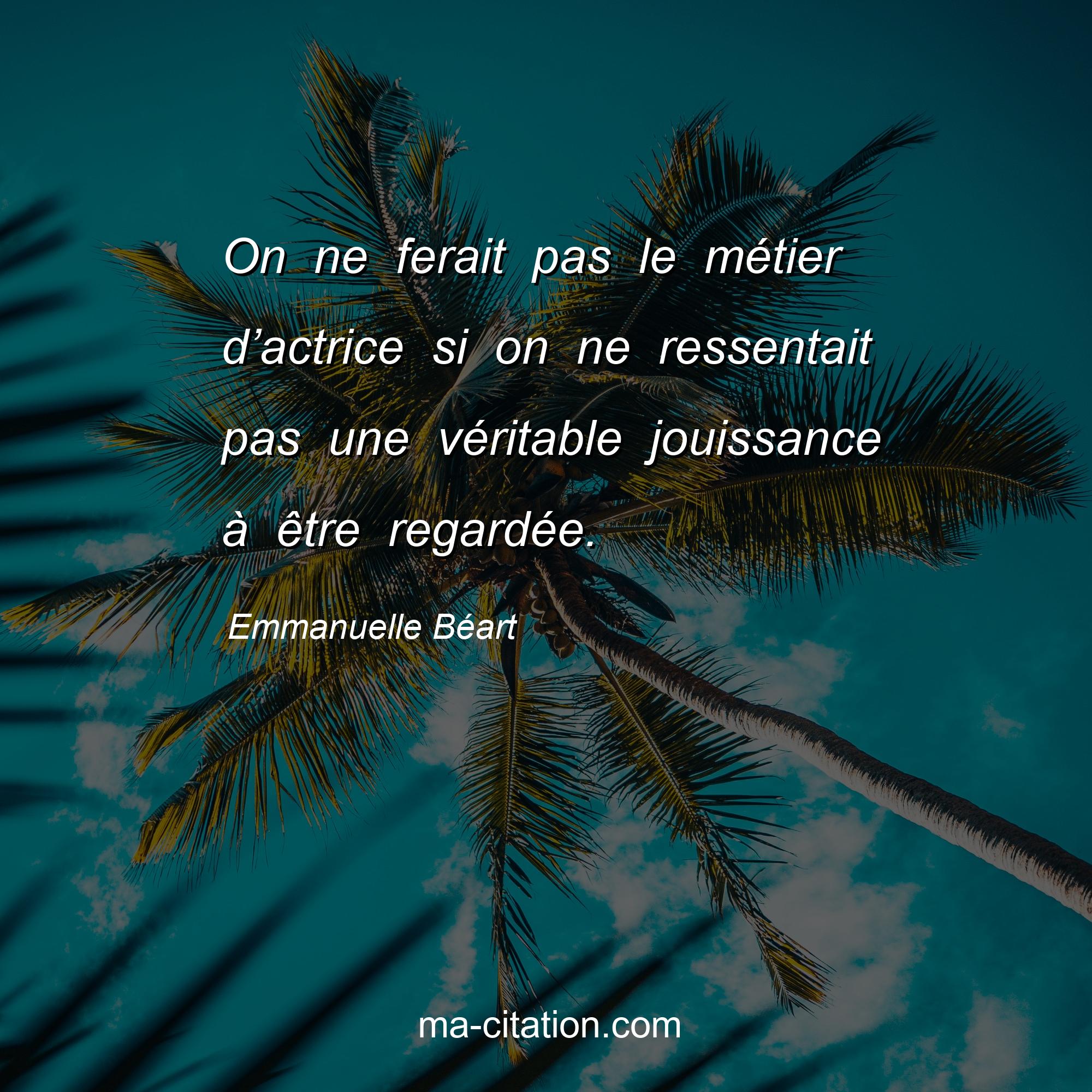 Citation sur la vie d'Emmanuelle Béart :On ne ferait pas le métier d’actrice si on ne ressentait pas une véritable jouissance à être regardée.