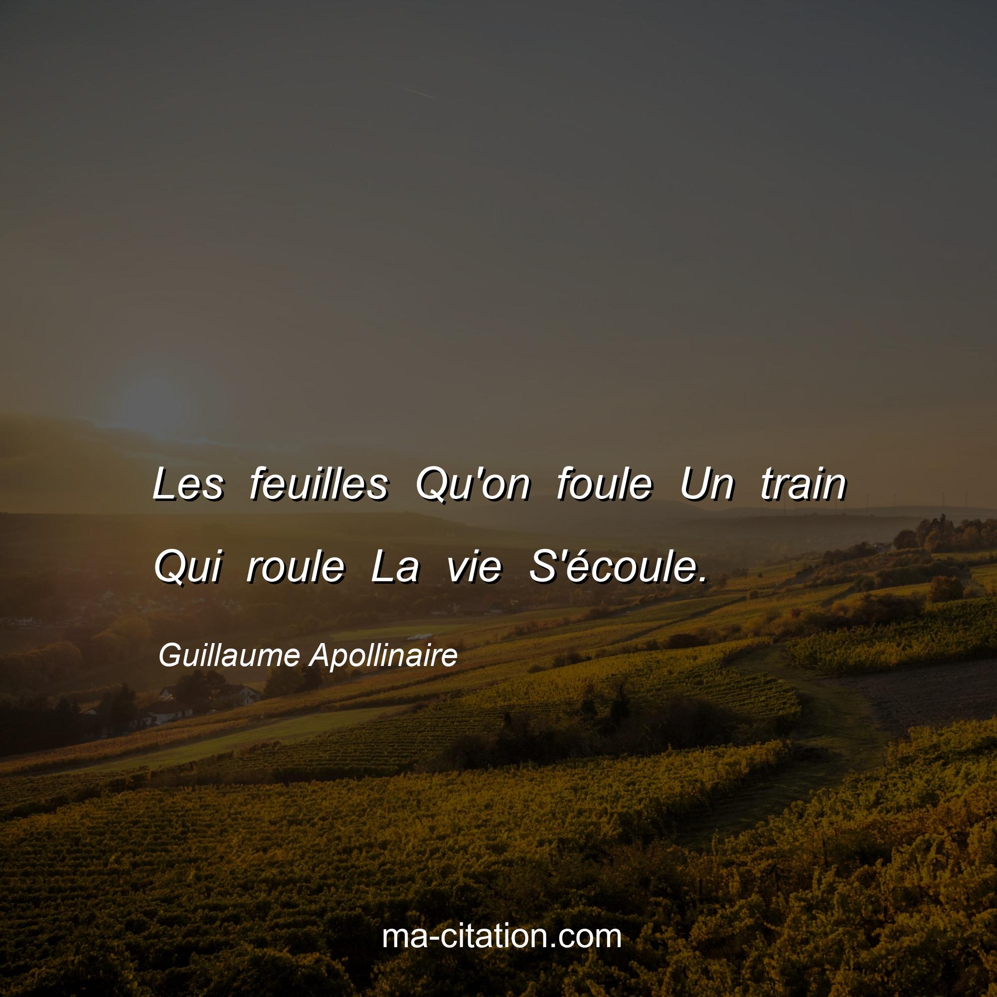 Citation sur la vie de Guillaume Apollinaire :Les feuilles Qu'on foule Un train Qui roule La vie S'écoule.