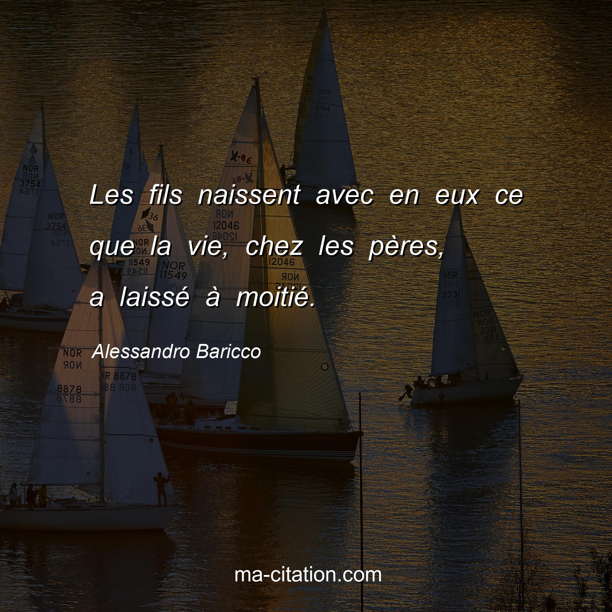 Citation sur la vie d'Alessandro Baricco :Les fils naissent avec en eux ce que la vie, chez les pères, a laissé à moitié.
