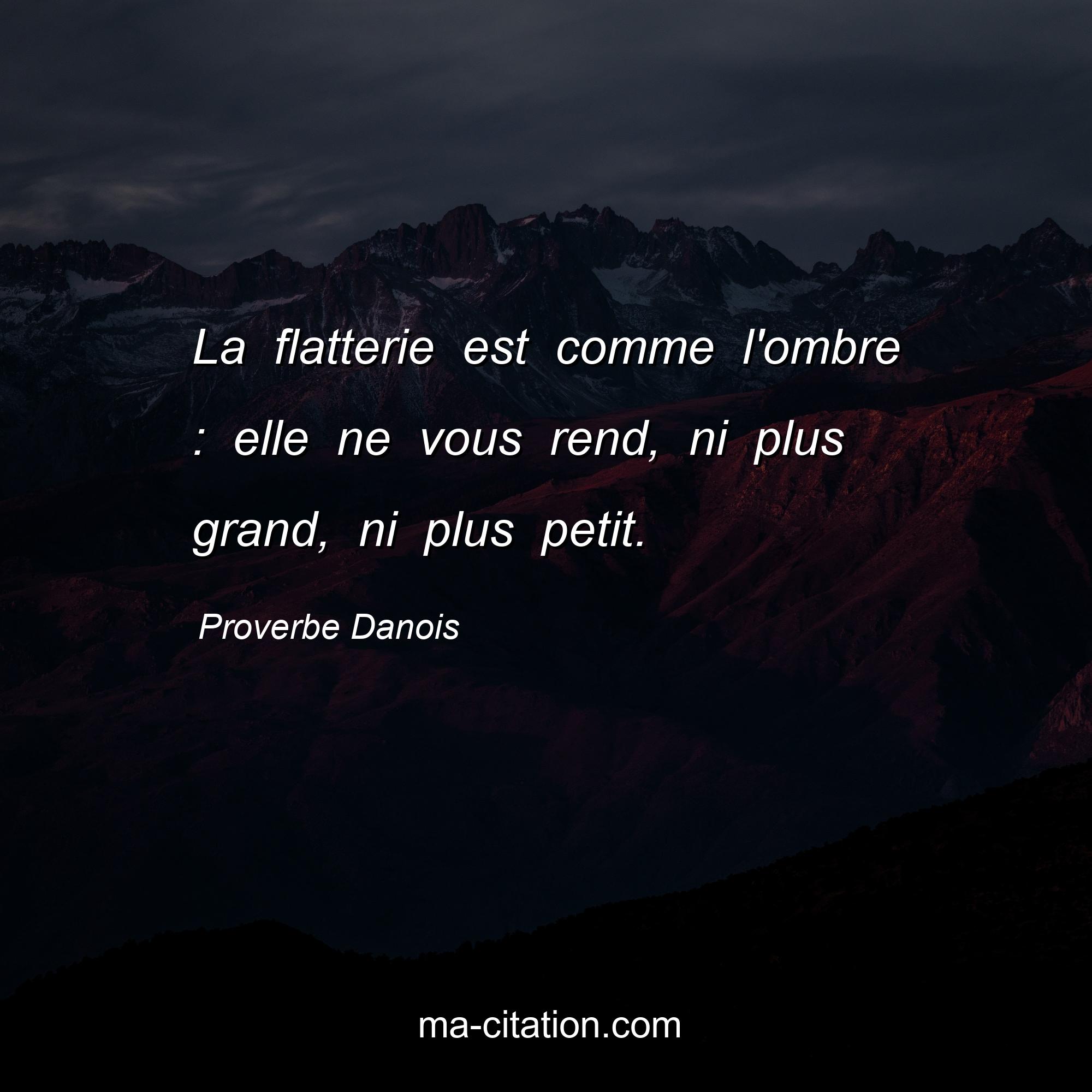 Proverbe Danois sur la vie :La flatterie est comme l'ombre : elle ne vous rend, ni plus grand, ni plus petit.
