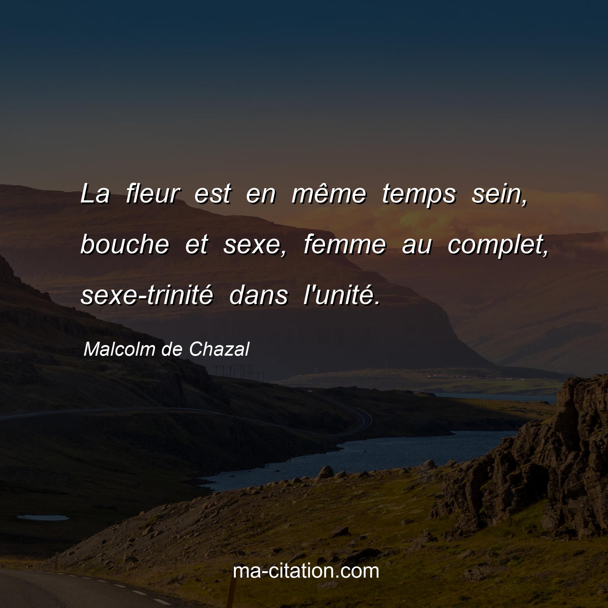 Citation sur la vie de Malcolm de Chazal :La fleur est en même temps sein, bouche et sexe, femme au complet, sexe-trinité dans l'unité.