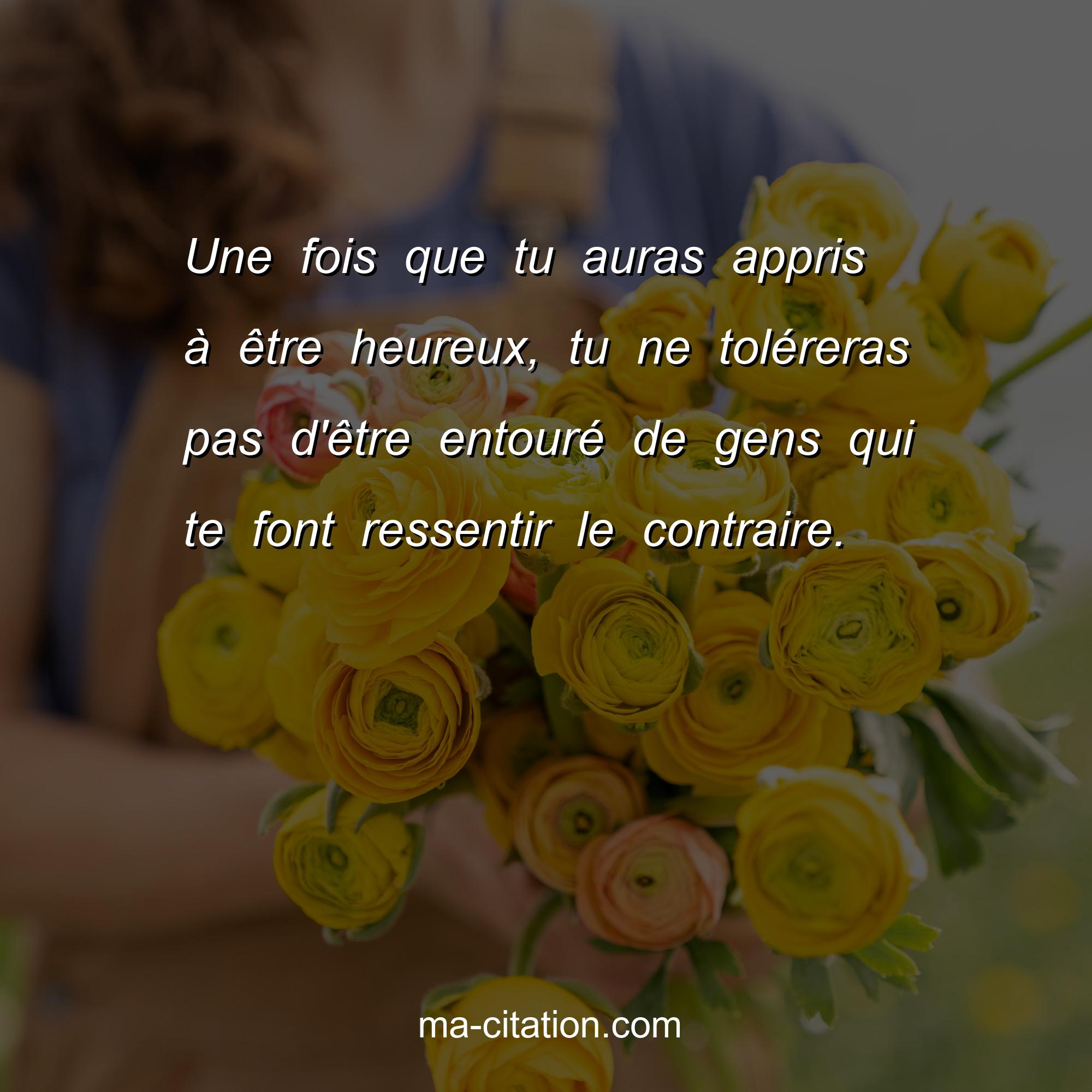Une fois que tu auras appris à être heureux, tu ne toléreras pas d'être entouré de gens qui te font ressentir le contraire.