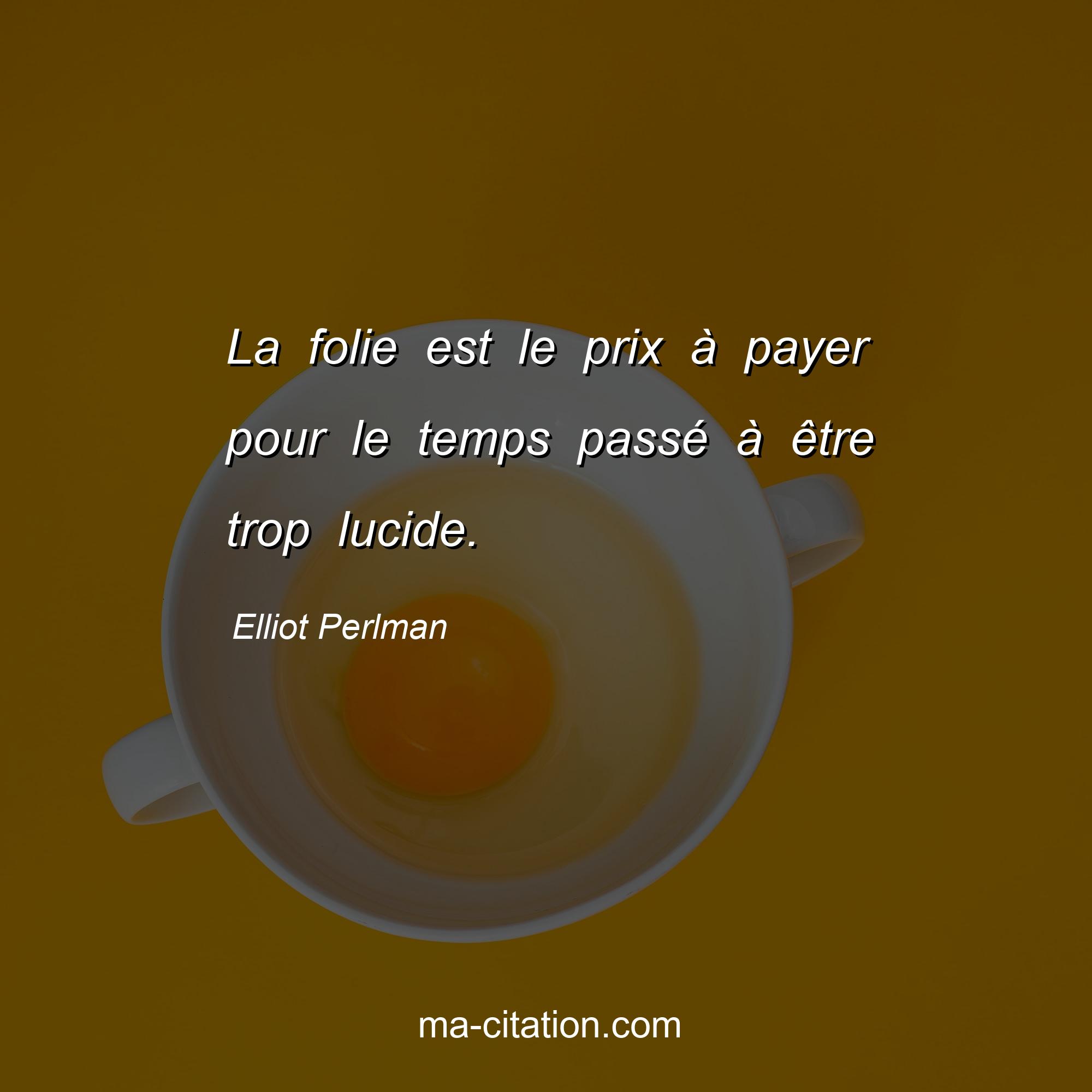 Citation sur la vie d'Elliot Perlman :La folie est le prix à payer pour le temps passé à être trop lucide.