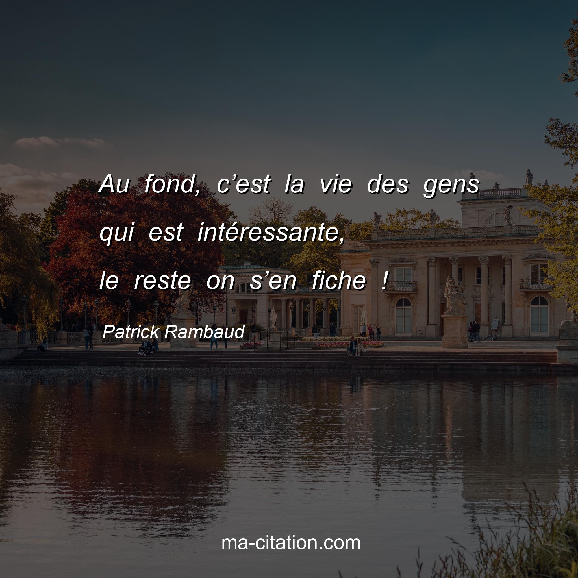 Citation sur la vie de Patrick Rambaud :Au fond, c’est la vie des gens qui est intéressante, le reste on s’en fiche !