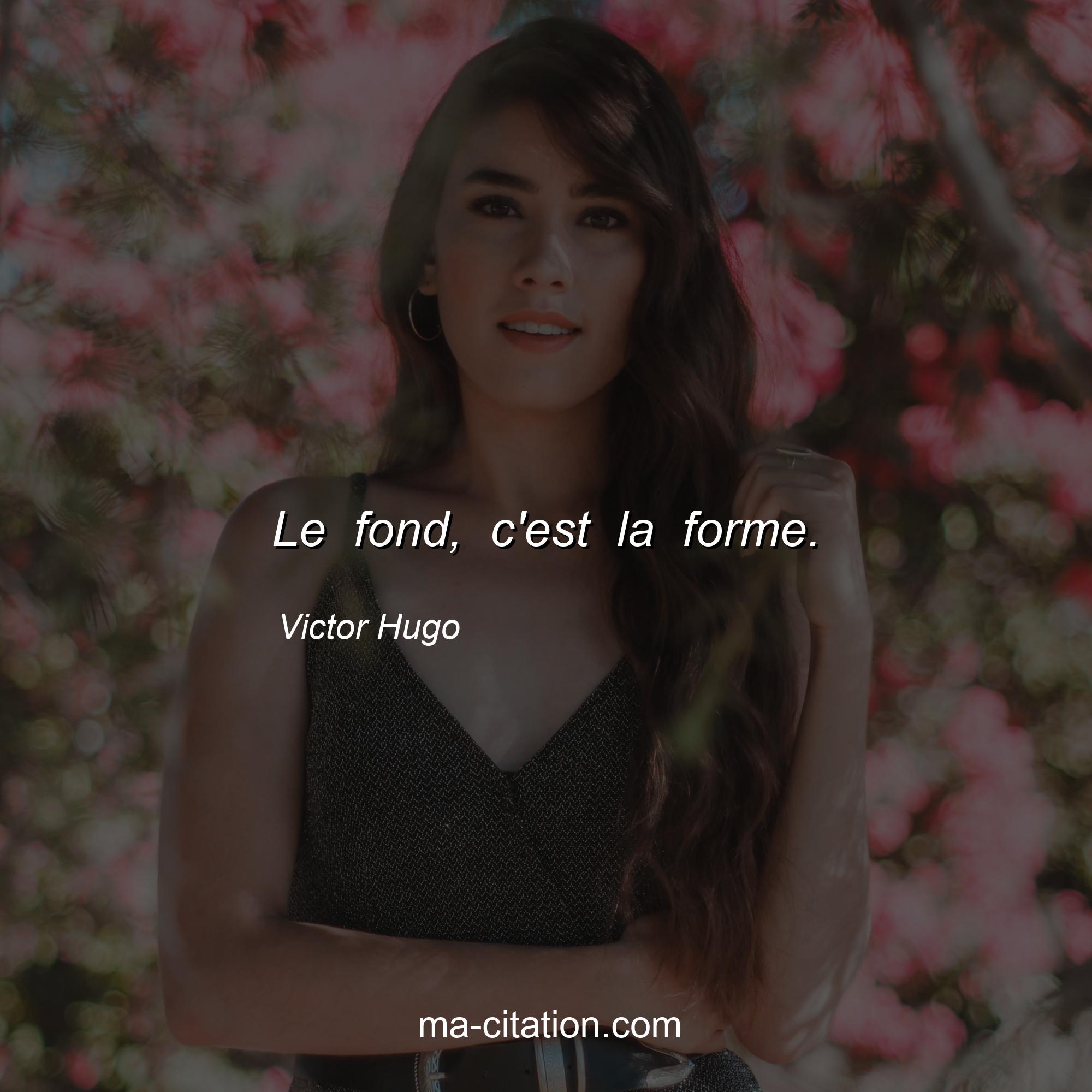 Citation sur la vie de Victor Hugo :Le fond, c'est la forme.