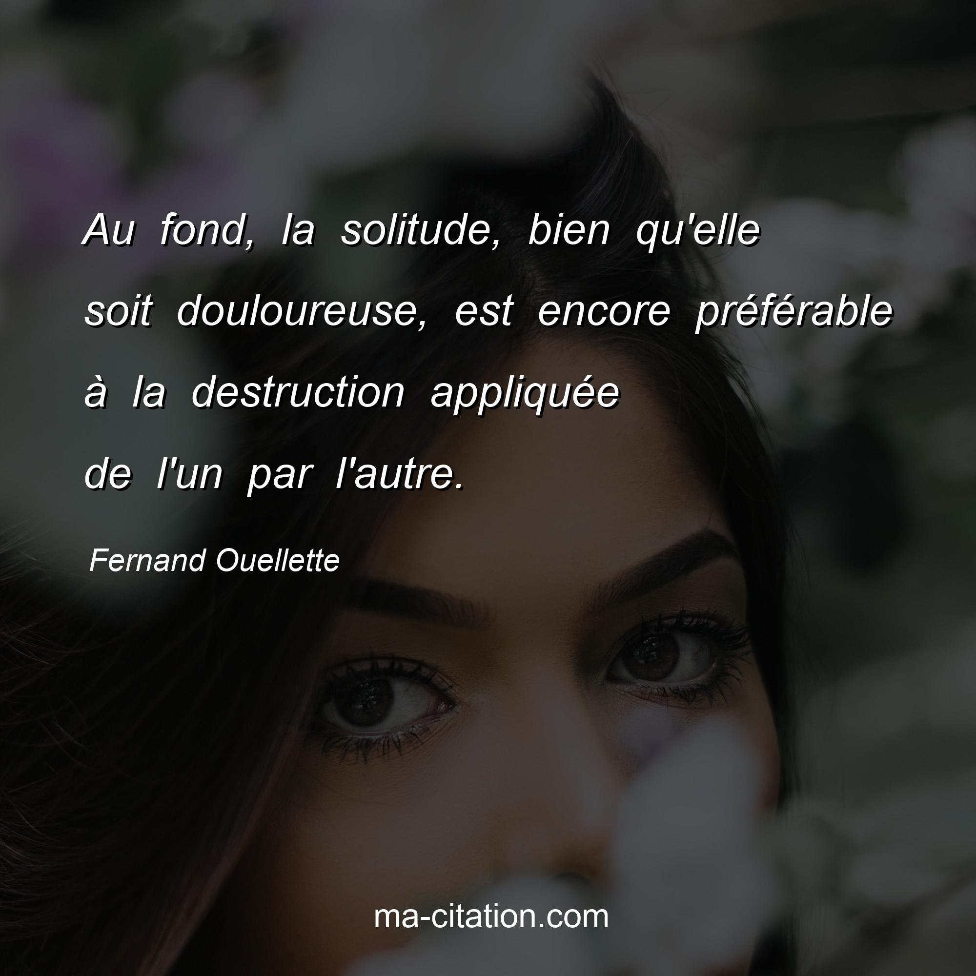 Citation sur la vie de Fernand Ouellette :Au fond, la solitude, bien qu'elle soit douloureuse, est encore préférable à la destruction appliquée de l'un par l'autre.