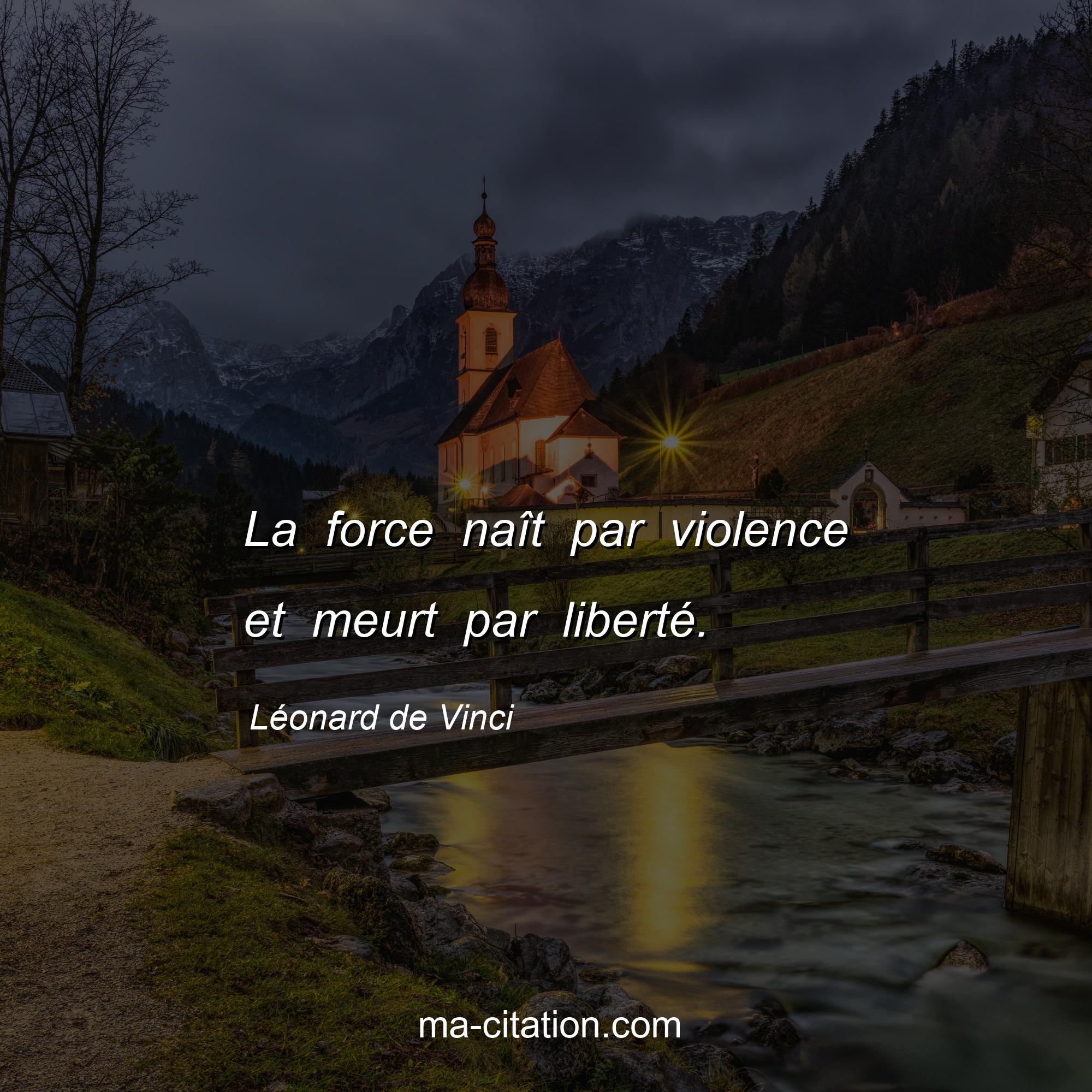 Citation sur la vie de Léonard de Vinci :La force naît par violence et meurt par liberté.