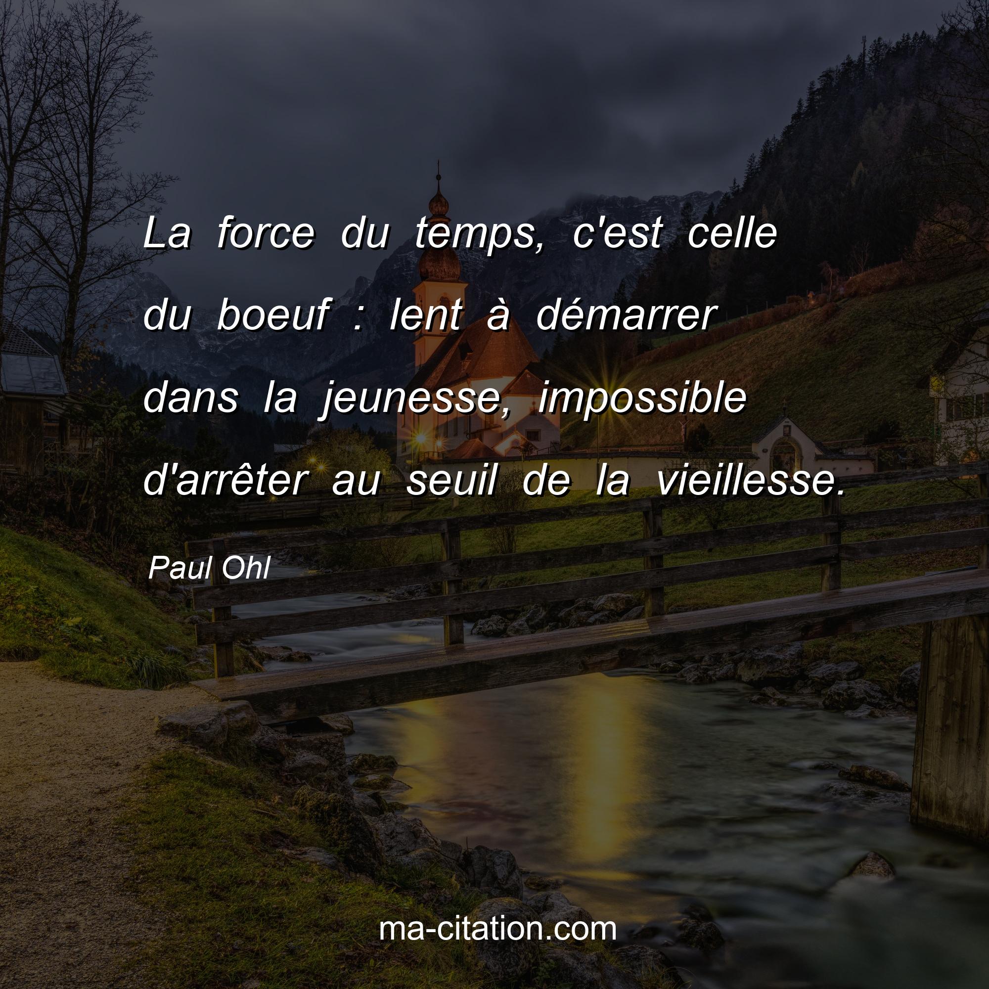 Paul Ohl est l'auteur de la citation sur la vie "La force du temps, c'est celle du boeuf : lent à démarrer dans la jeunesse, impossible d'arrêter au seuil de la vieillesse.".