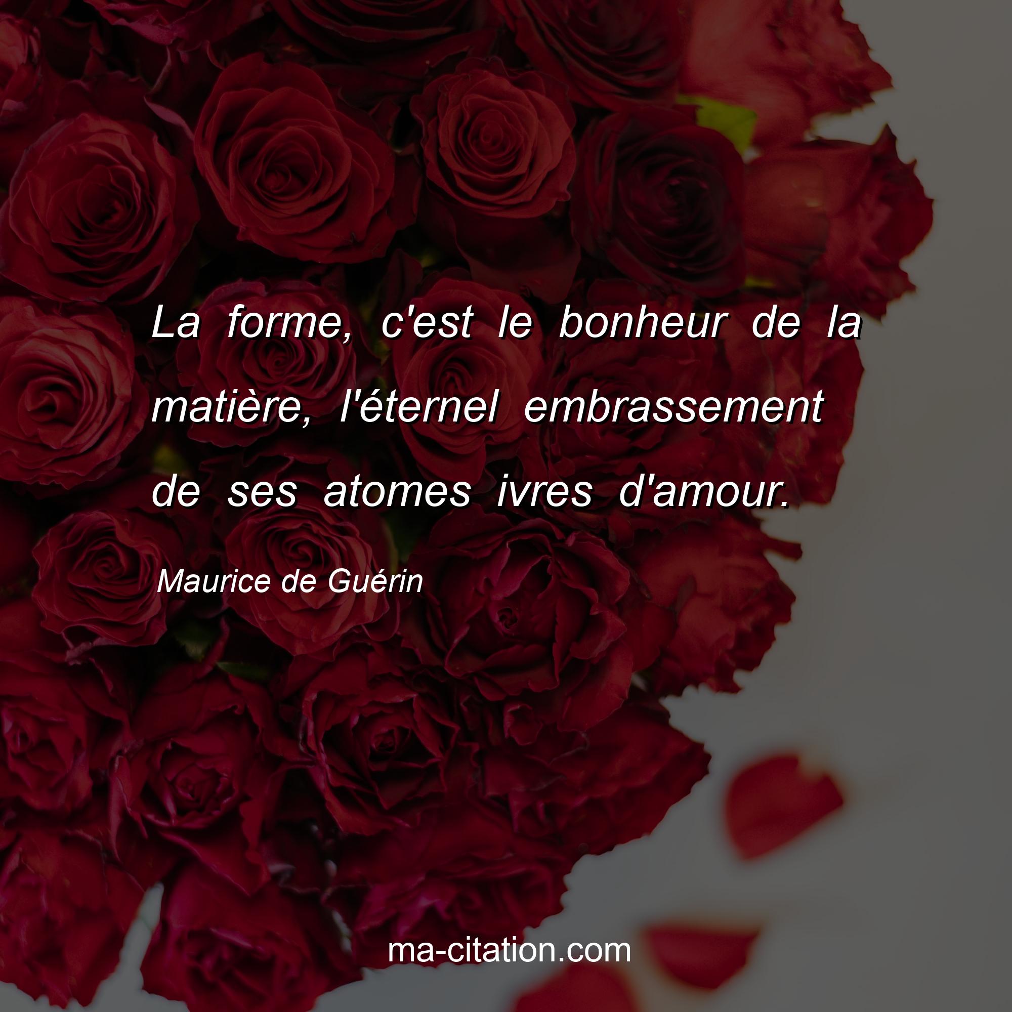 Citation sur la vie de Maurice de Guérin :La forme, c'est le bonheur de la matière, l'éternel embrassement de ses atomes ivres d'amour.