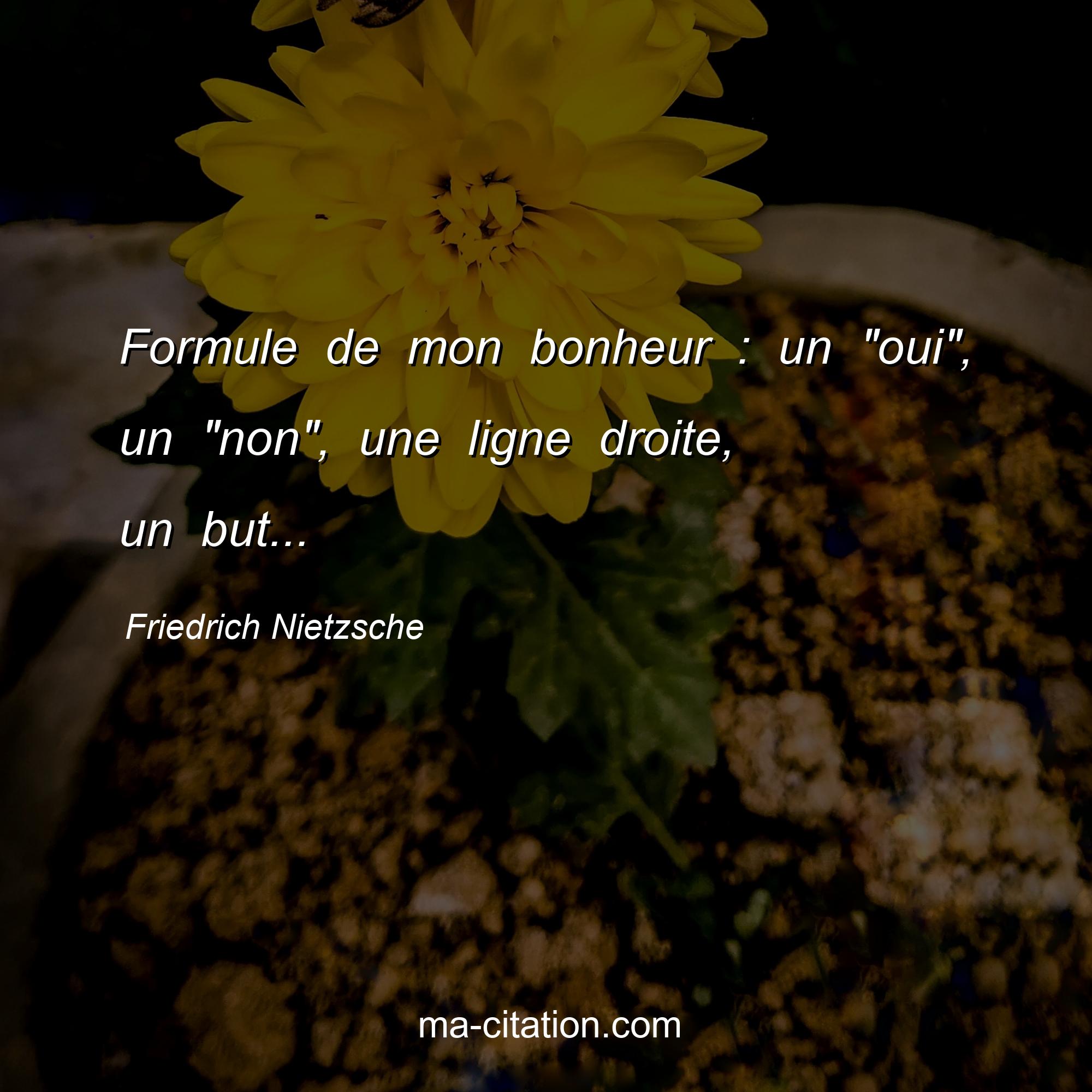 Citation sur la vie de Friedrich Nietzsche :Formule de mon bonheur : un "oui", un "non", une ligne droite, un but...