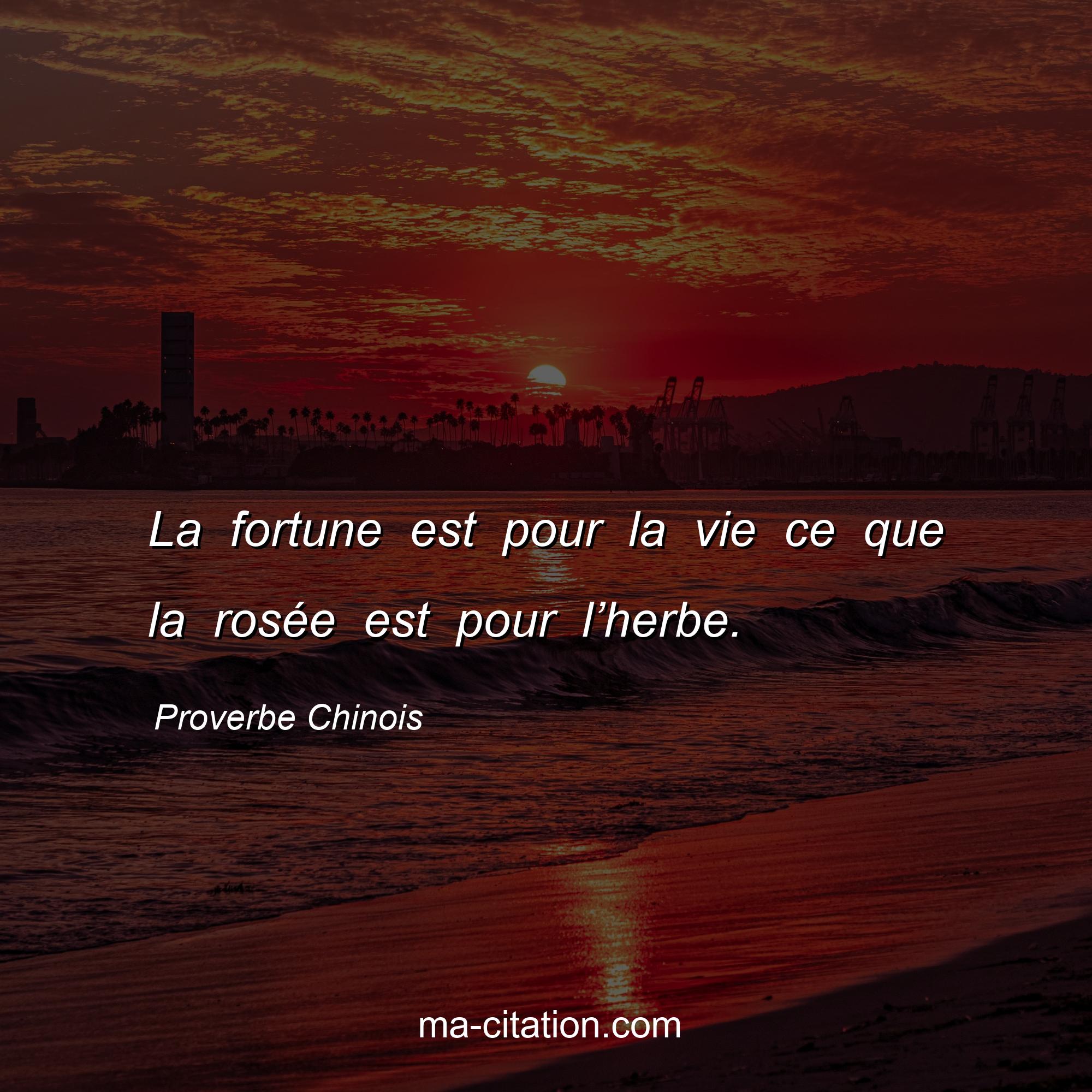 Proverbe Chinois sur la vie :La fortune est pour la vie ce que la rosée est pour l’herbe.