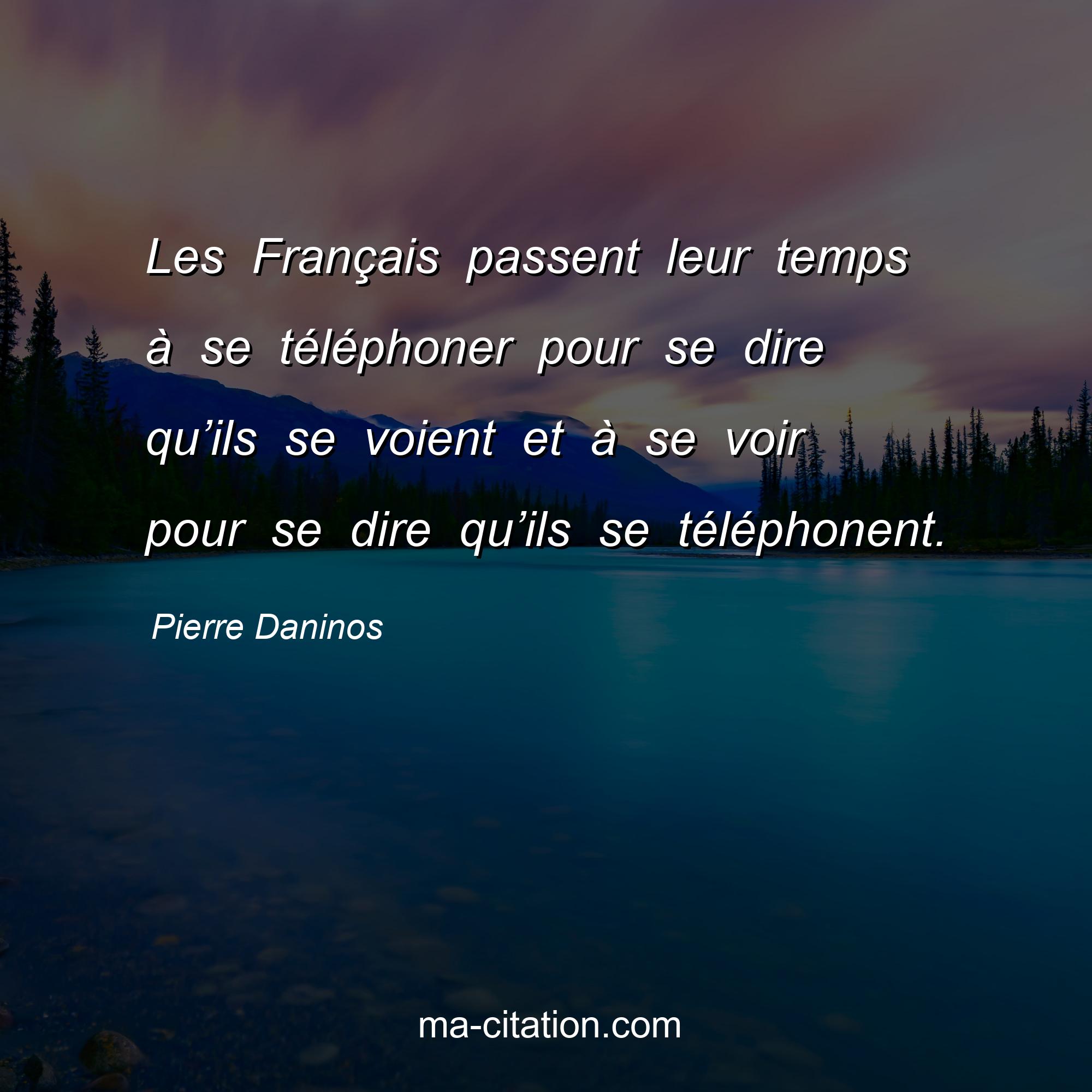Citation sur la vie de Pierre Daninos :Les Français passent leur temps à se téléphoner pour se dire qu’ils se voient et à se voir pour se dire qu’ils se téléphonent.