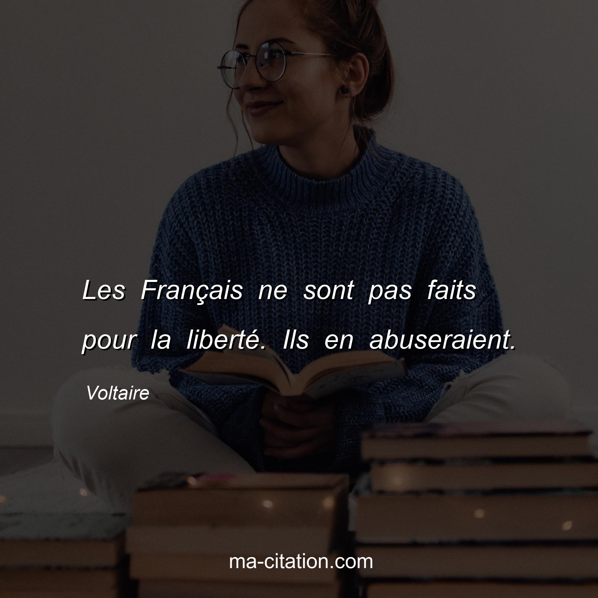Citation sur la vie de Voltaire :Les Français ne sont pas faits pour la liberté. Ils en abuseraient.