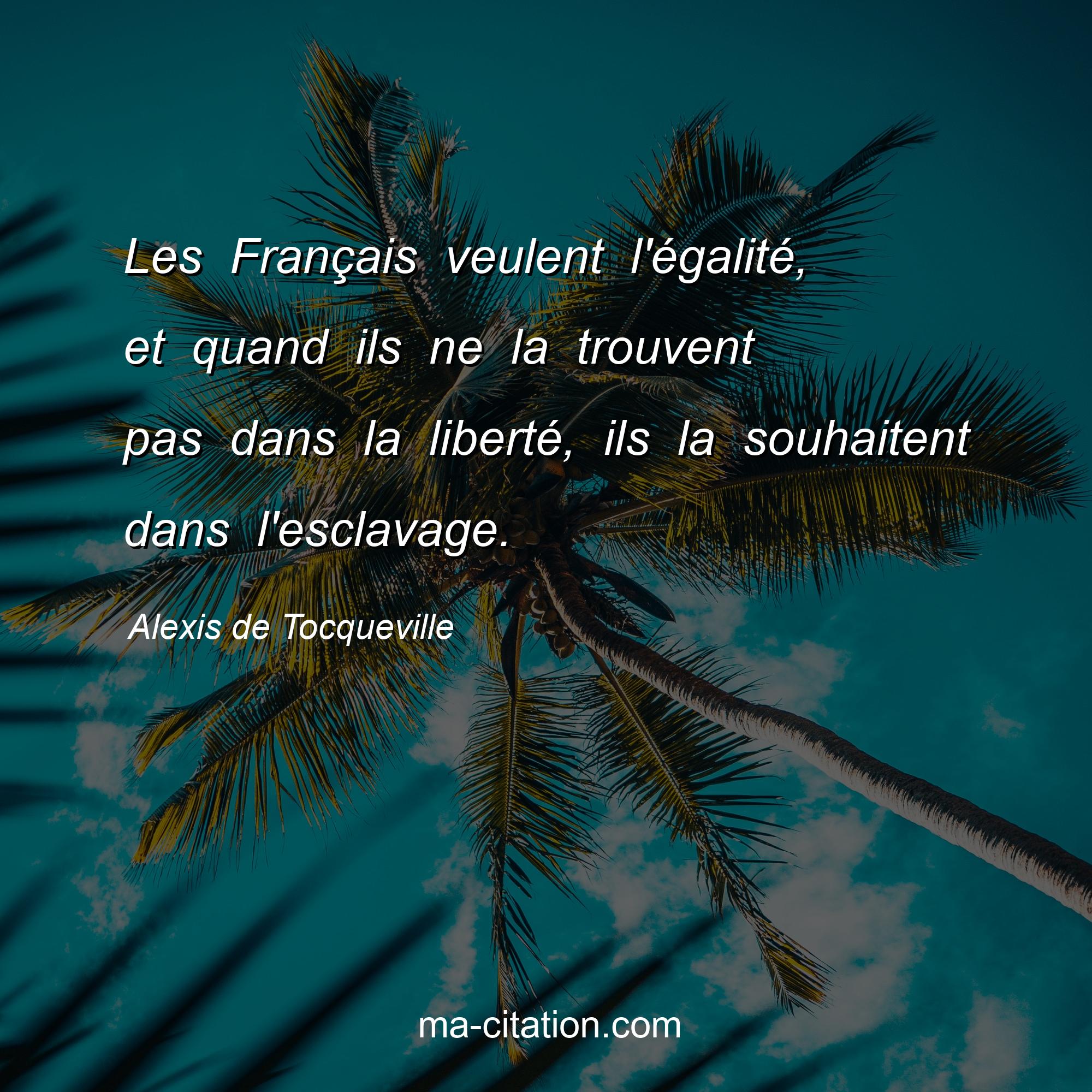 Les Français veulent l'égalité, et quand ils ne la trouvent pas dans la liberté, ils la souhaitent dans l'esclavage.