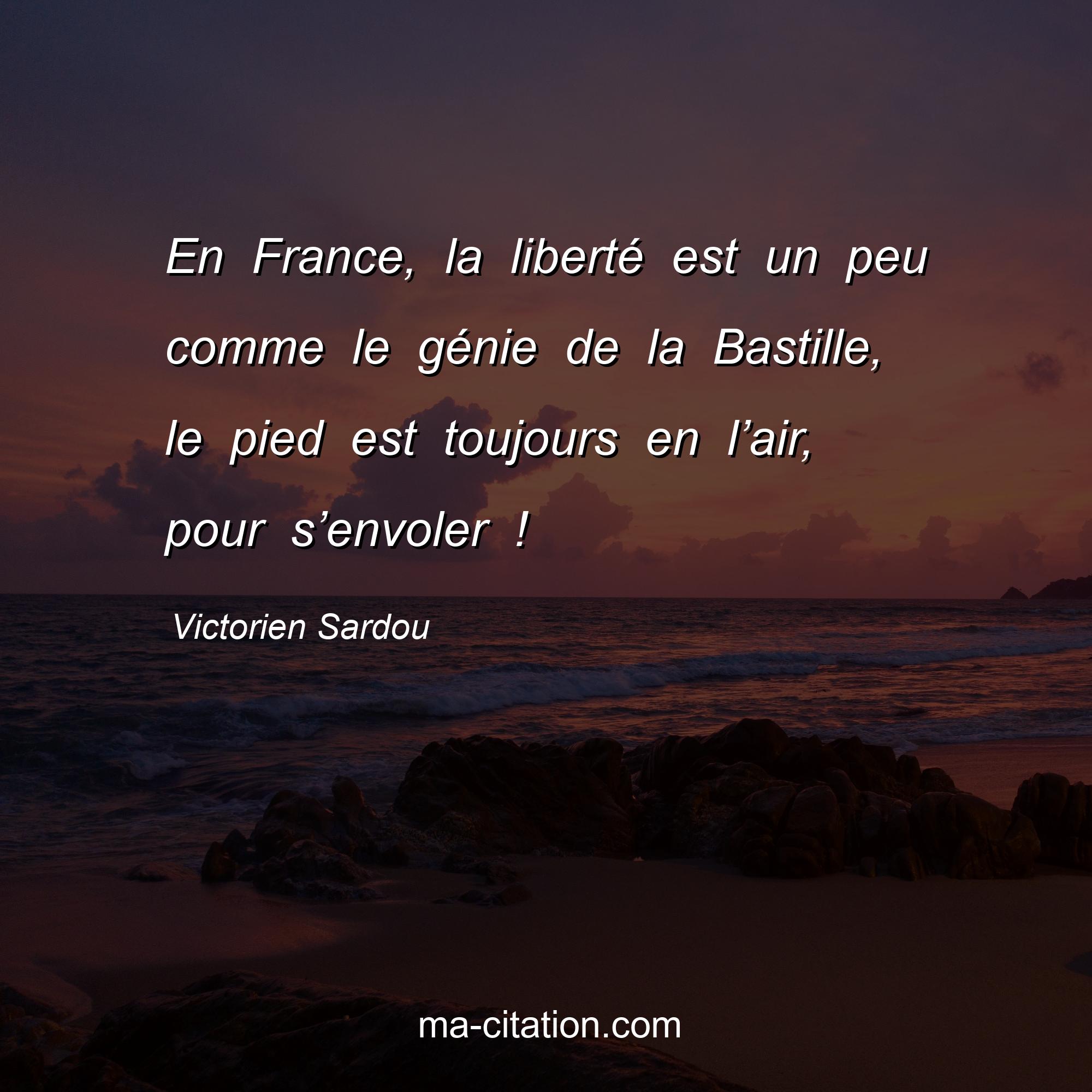 Citation sur la vie de Victorien Sardou :En France, la liberté est un peu comme le génie de la Bastille, le pied est toujours en l’air, pour s’envoler !