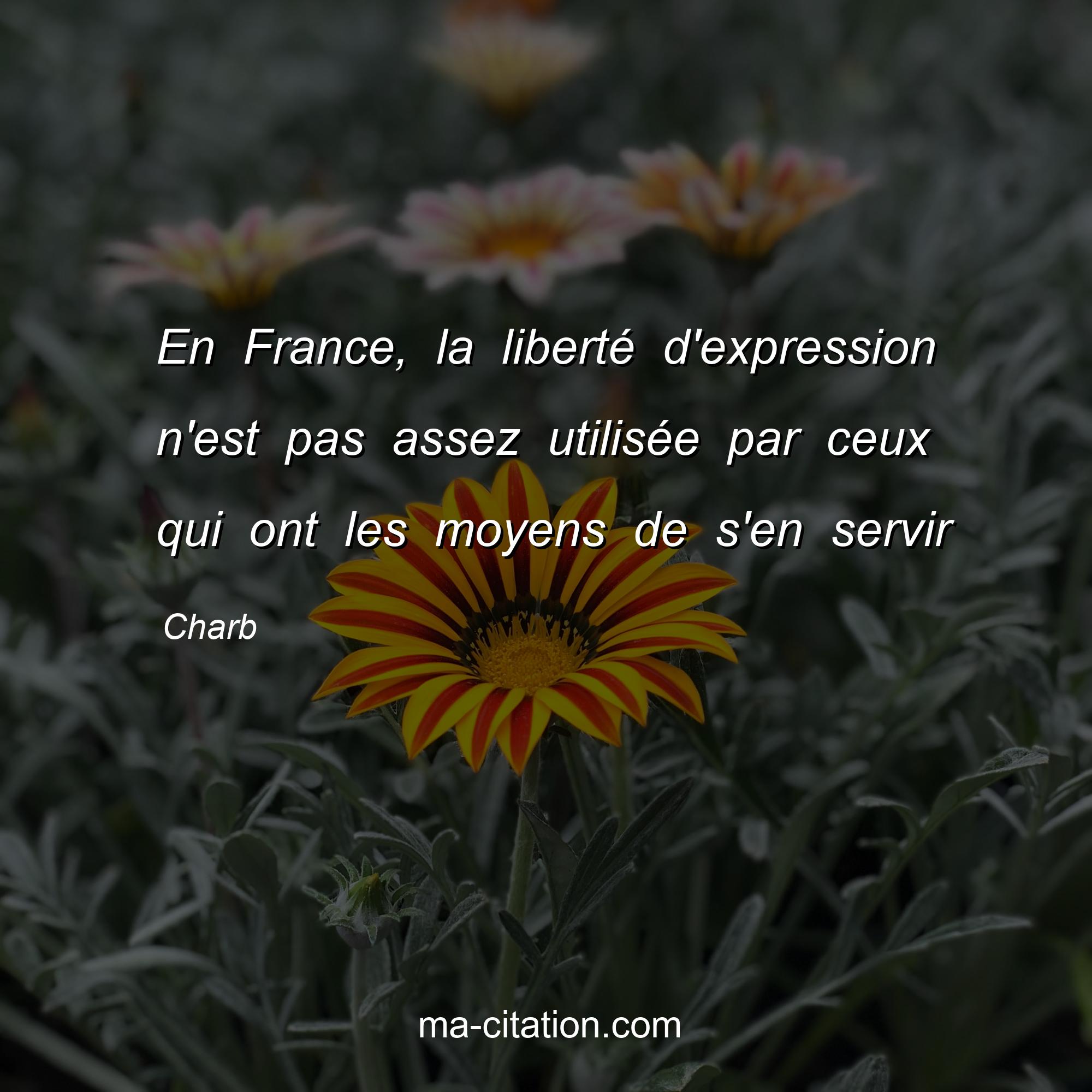 Charb est l'auteur de la citation sur la vie "En France, la liberté d'expression n'est pas assez utilisée par ceux qui ont les moyens de s'en servir".