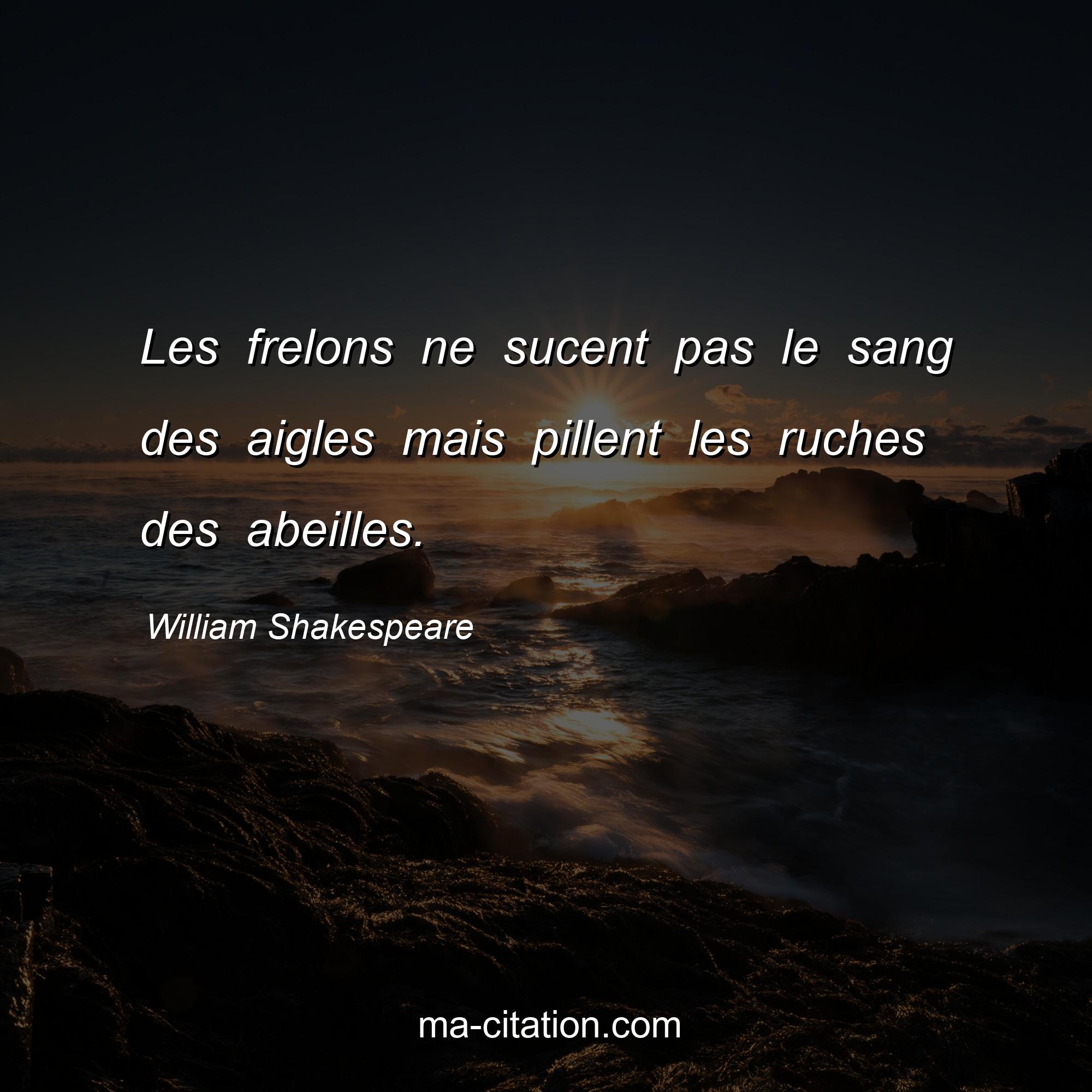 Citation sur la vie de William Shakespeare :Les frelons ne sucent pas le sang des aigles mais pillent les ruches des abeilles.