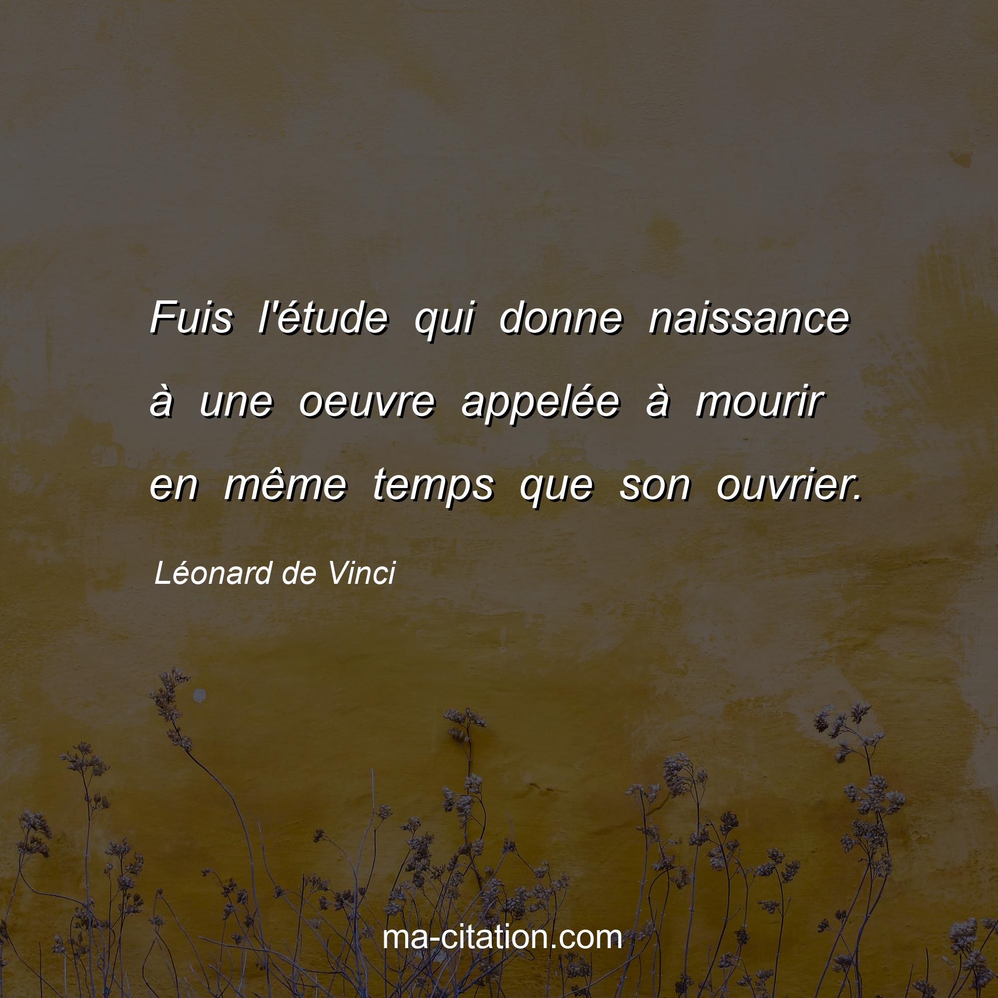 Citation sur la vie de Léonard de Vinci :Fuis l'étude qui donne naissance à une oeuvre appelée à mourir en même temps que son ouvrier.
