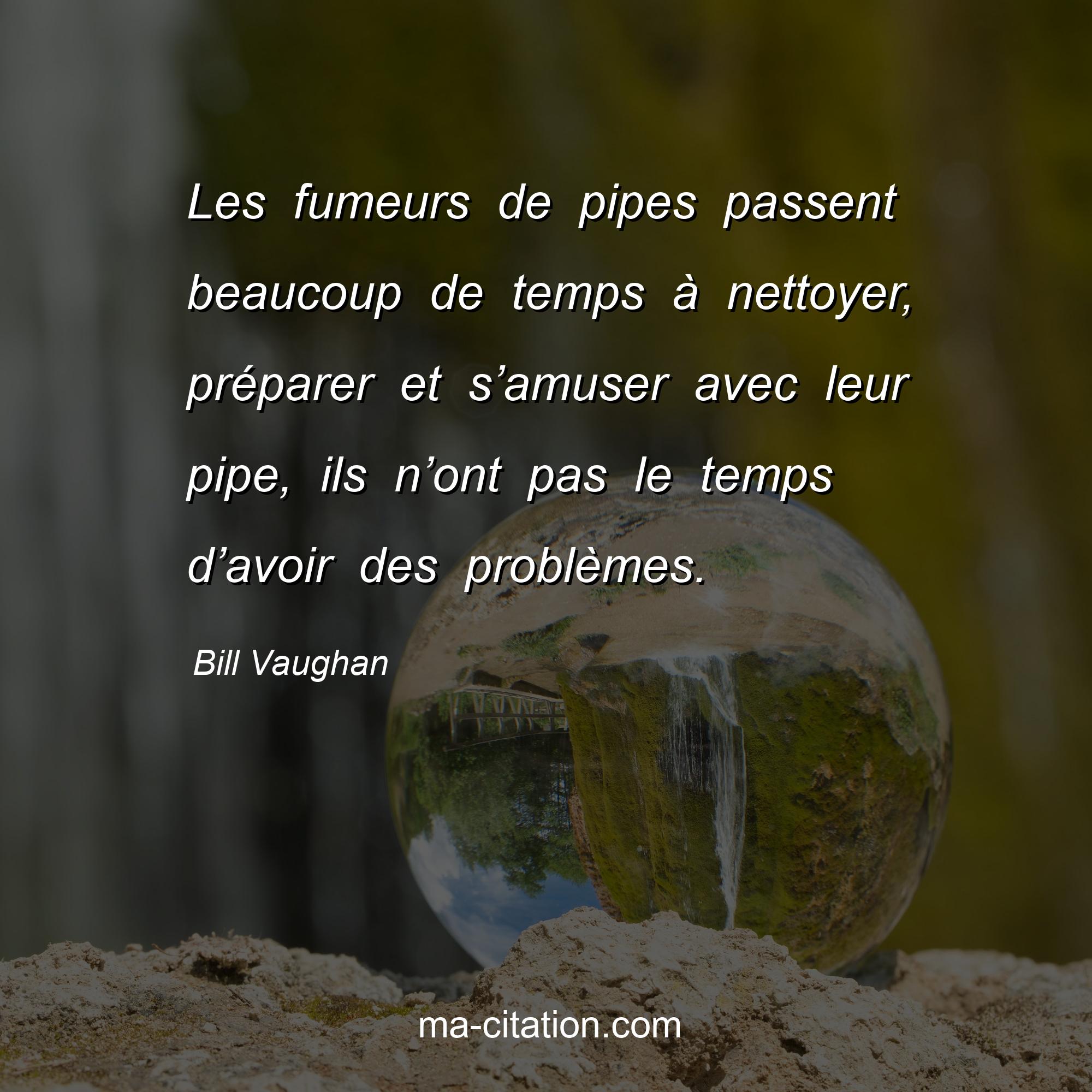 Citation sur la vie de Bill Vaughan :Les fumeurs de pipes passent beaucoup de temps à nettoyer, préparer et s’amuser avec leur pipe, ils n’ont pas le temps d’avoir des problèmes.
