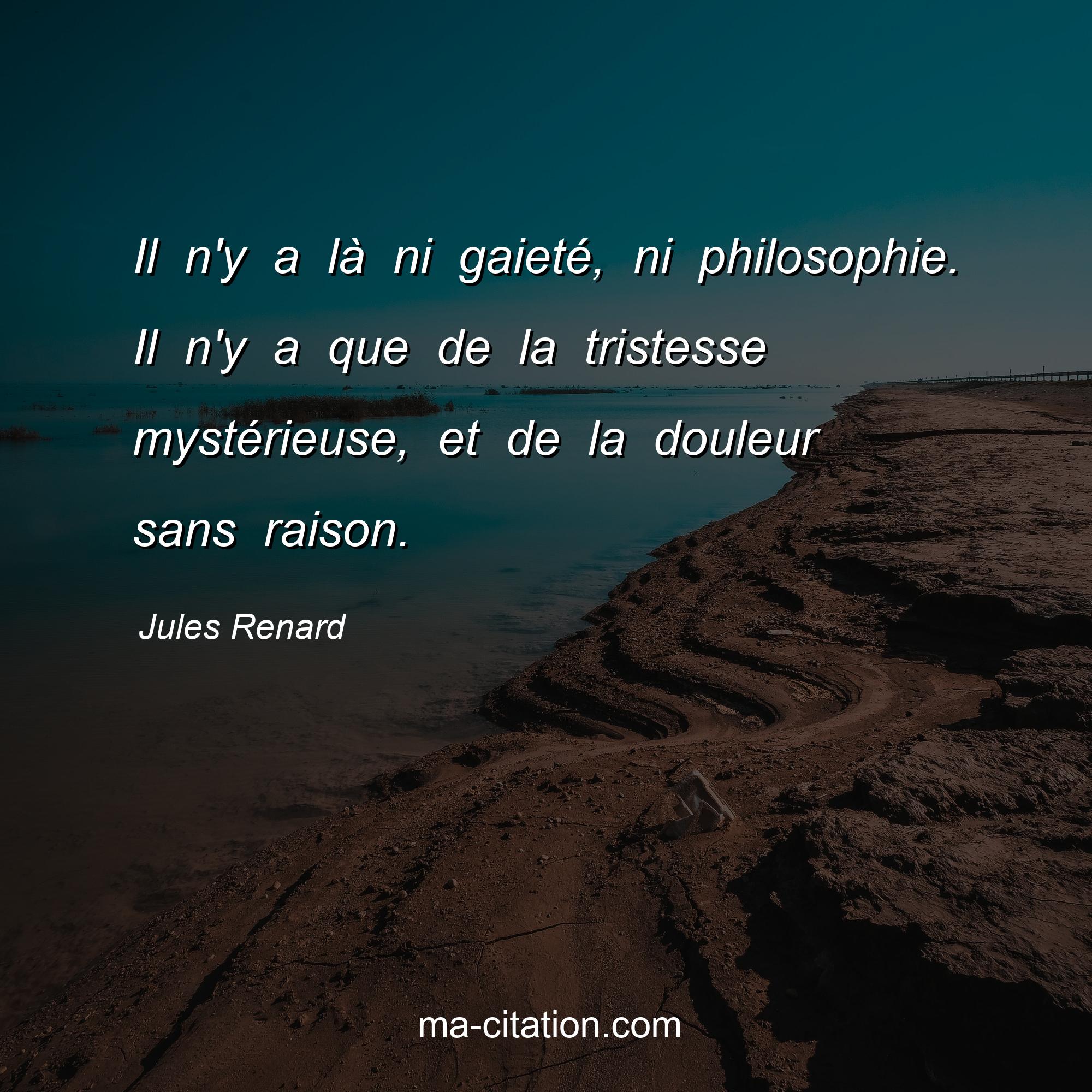 Jules Renard est l'auteur de la citation sur la vie "Il n'y a là ni gaieté, ni philosophie. Il n'y a que de la tristesse mystérieuse, et de la douleur sans raison.".