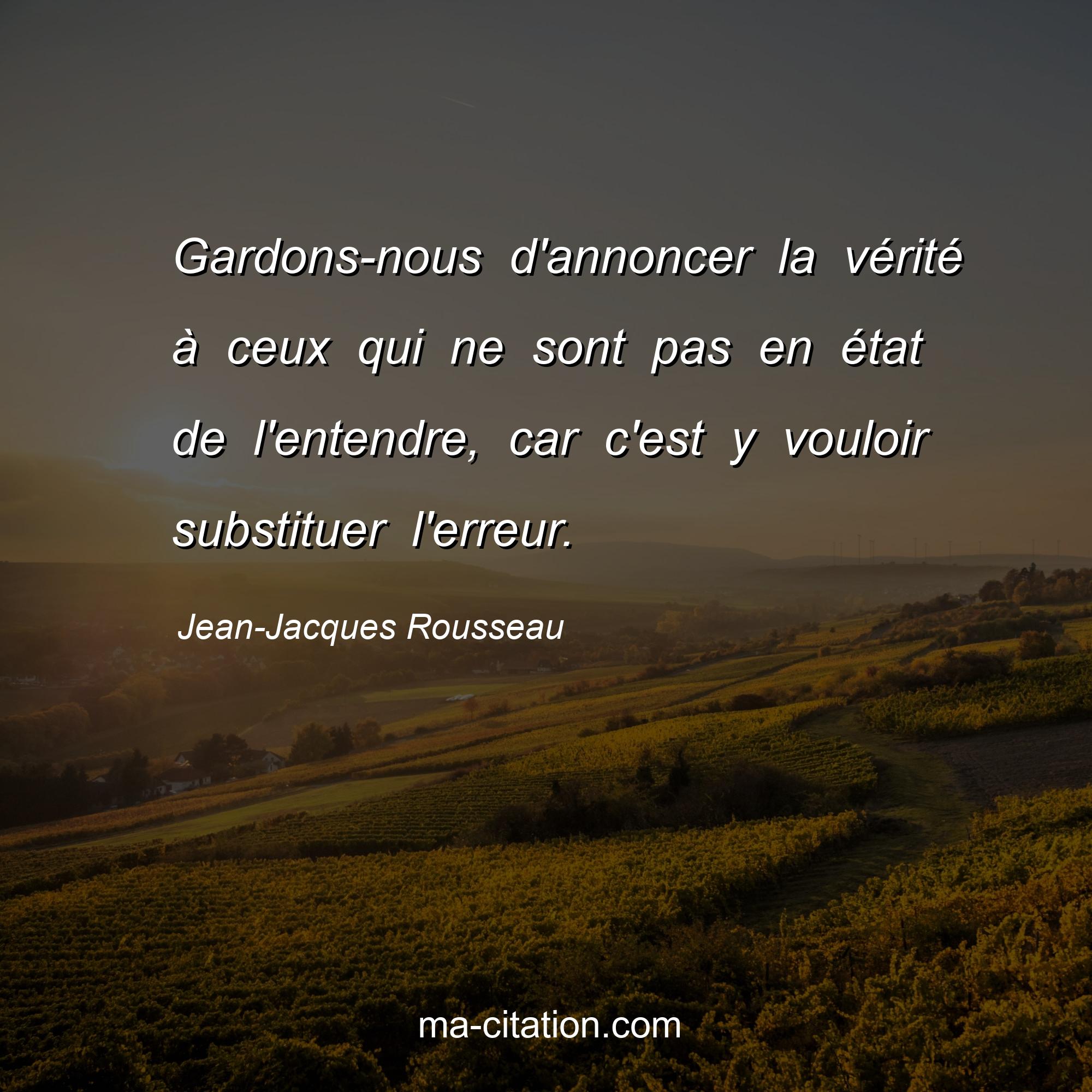 Citation sur la vie de Jean-Jacques Rousseau :Gardons-nous d'annoncer la vérité à ceux qui ne sont pas en état de l'entendre, car c'est y vouloir substituer l'erreur.
