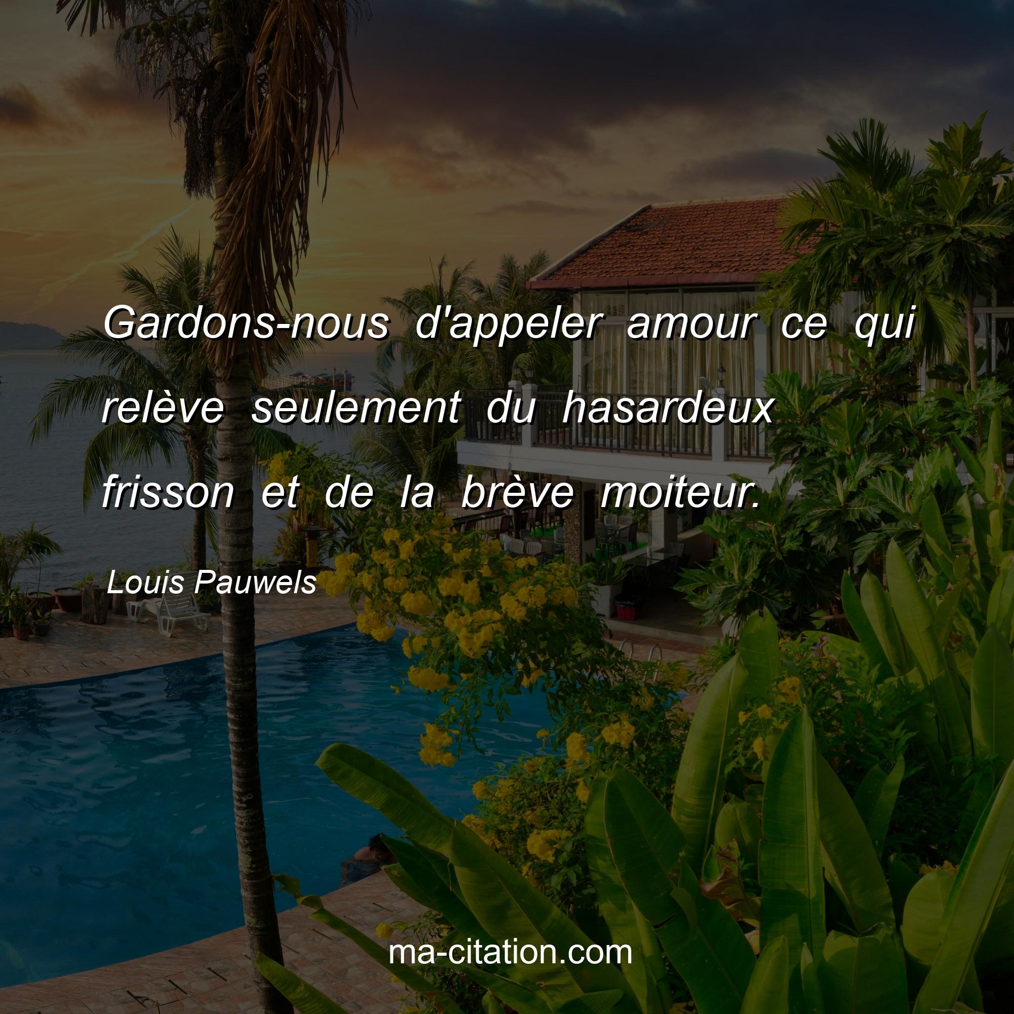 Citation sur la vie de Louis Pauwels :Gardons-nous d'appeler amour ce qui relève seulement du hasardeux frisson et de la brève moiteur.