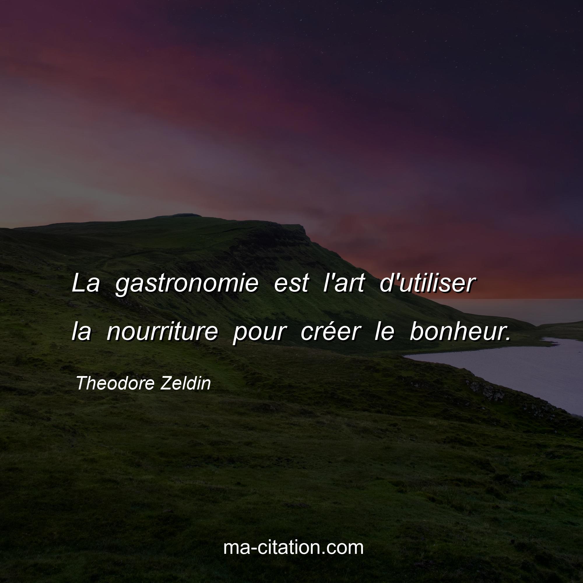 Theodore Zeldin est l'auteur de la citation sur la vie "La gastronomie est l'art d'utiliser la nourriture pour créer le bonheur.".