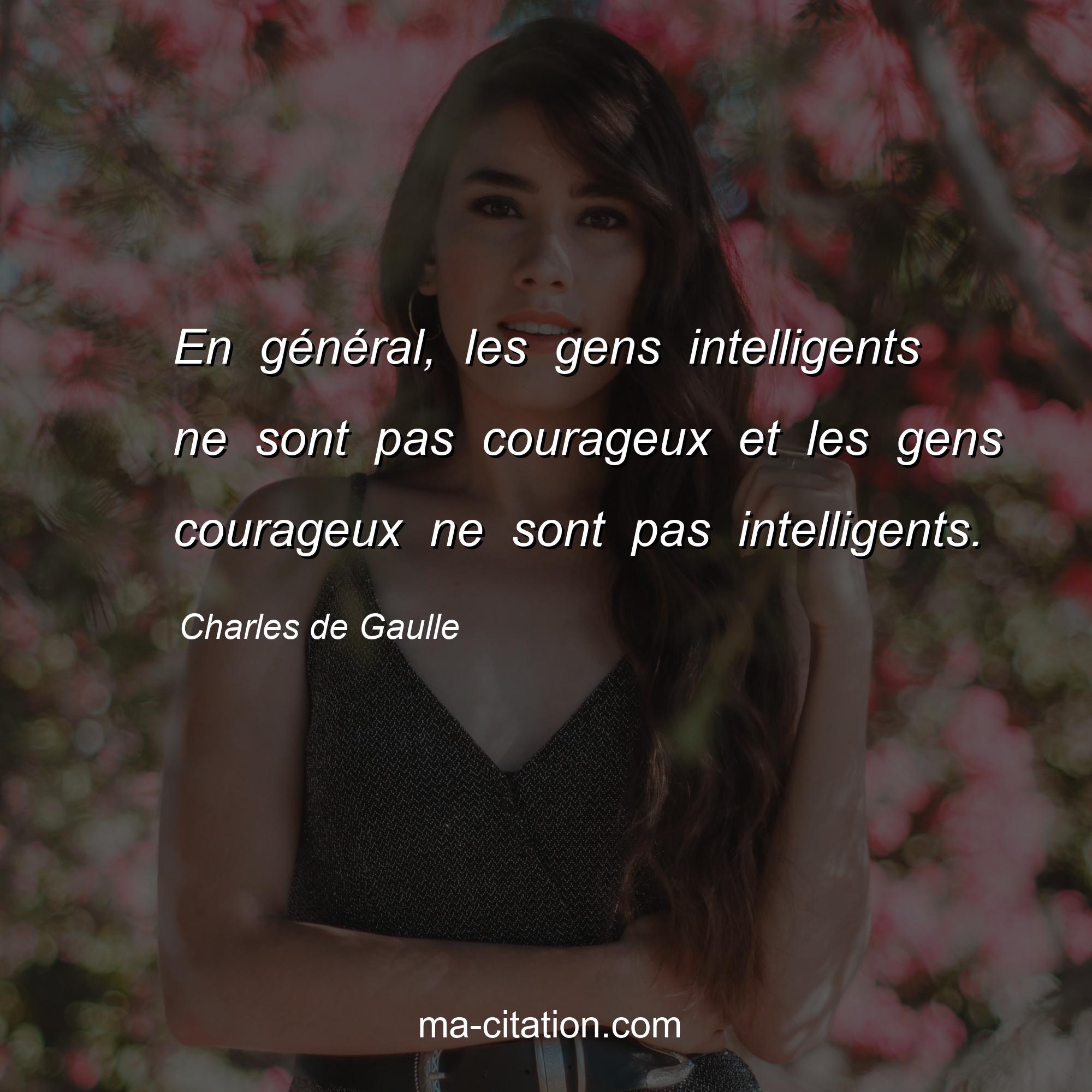 Citation sur la vie de Charles de Gaulle :En général, les gens intelligents ne sont pas courageux et les gens courageux ne sont pas intelligents.