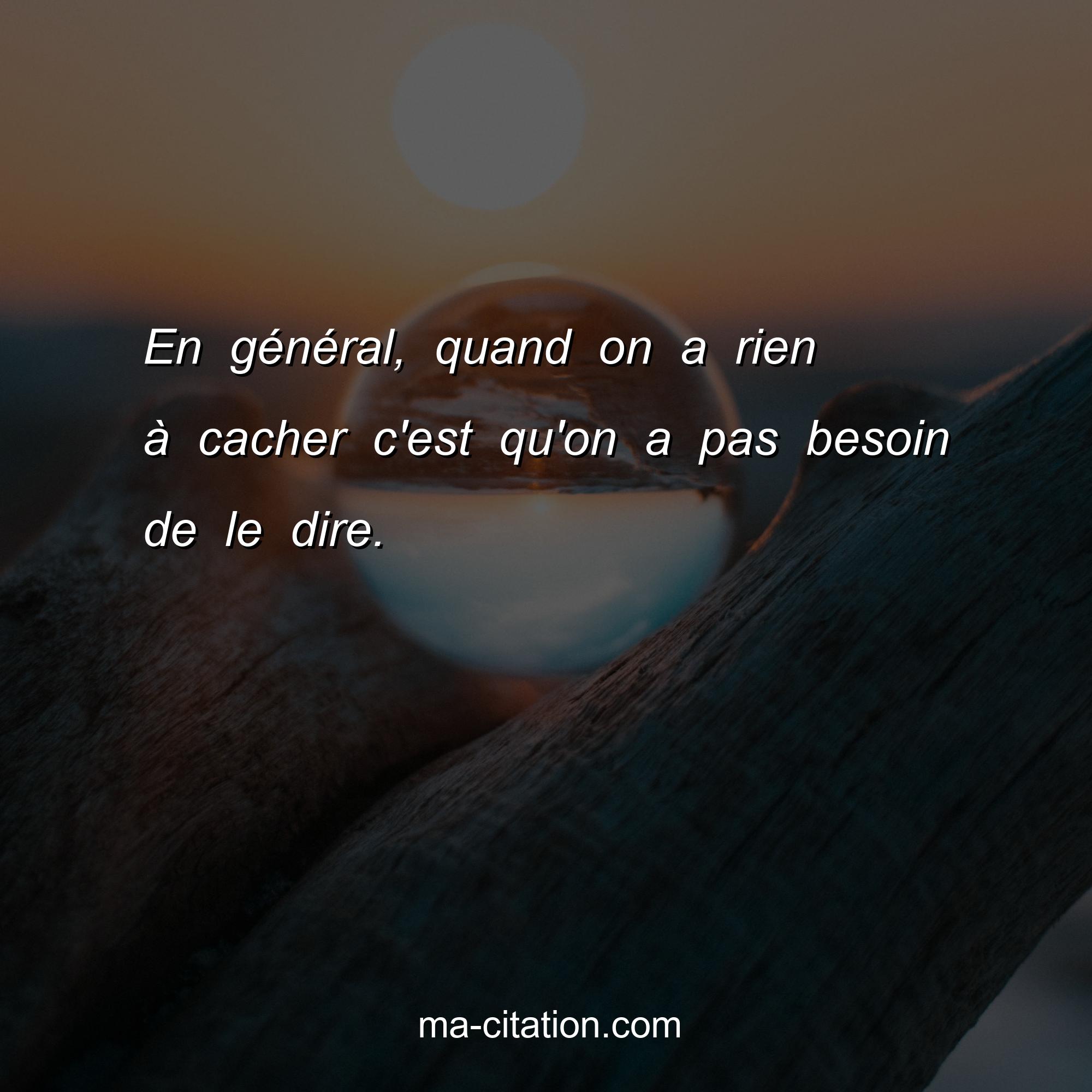 Citation sur la vie :En général, quand on a rien à cacher c'est qu'on a pas besoin de le dire.