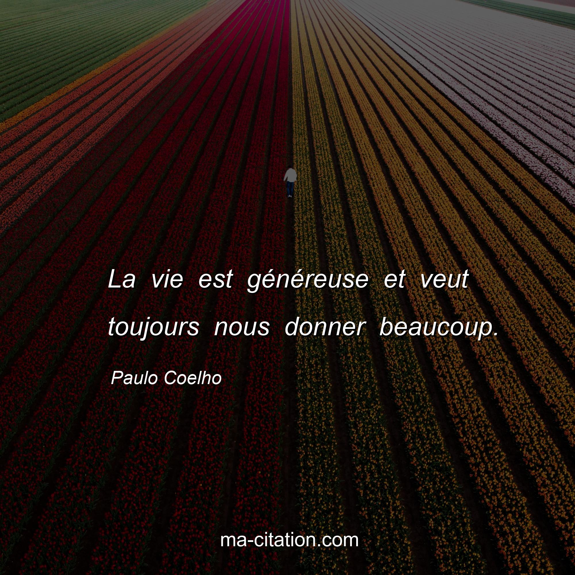 Citation sur la vie de Paulo Coelho :La vie est généreuse et veut toujours nous donner beaucoup.
