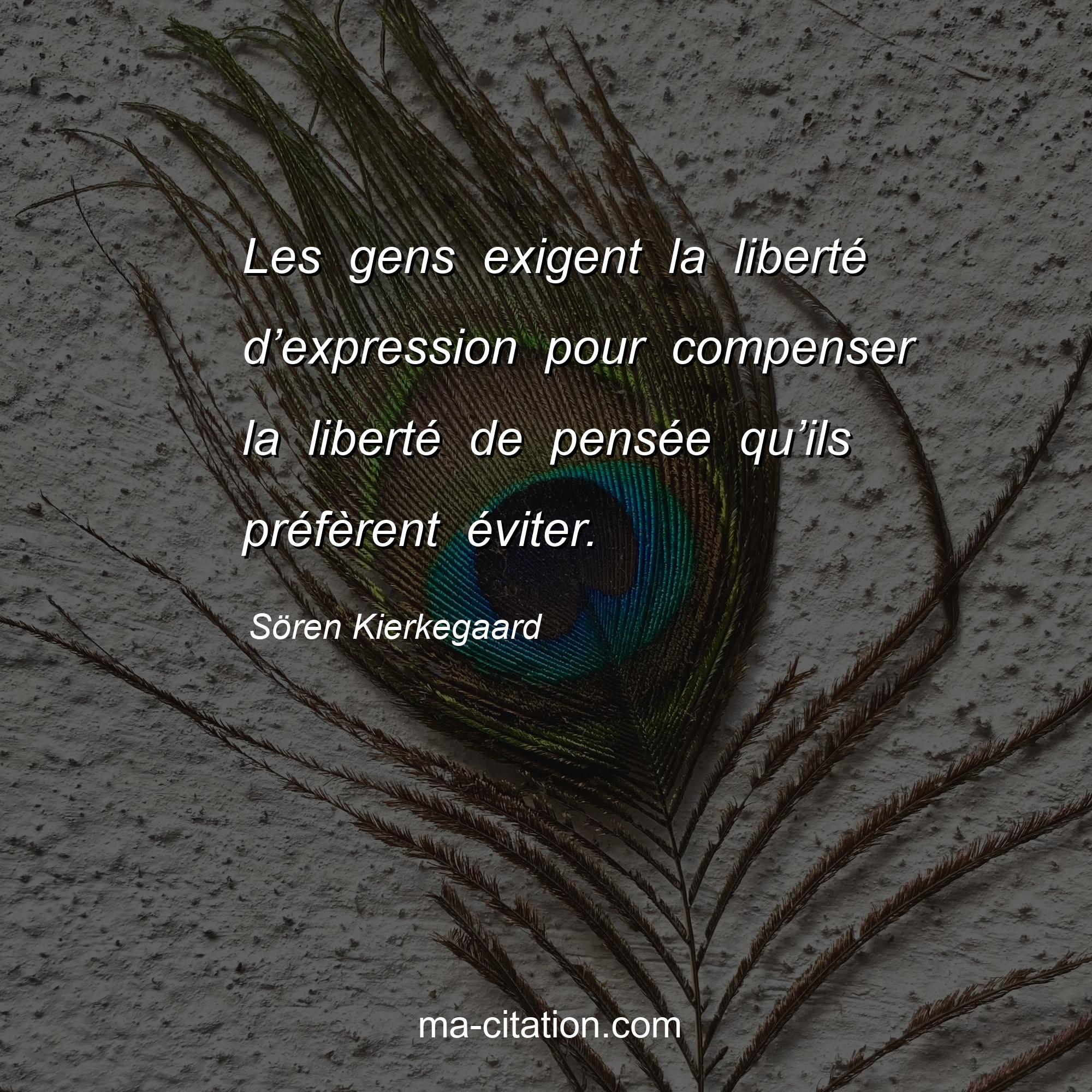 Citation sur la vie de Sören Kierkegaard :Les gens exigent la liberté d’expression pour compenser la liberté de pensée qu’ils préfèrent éviter.