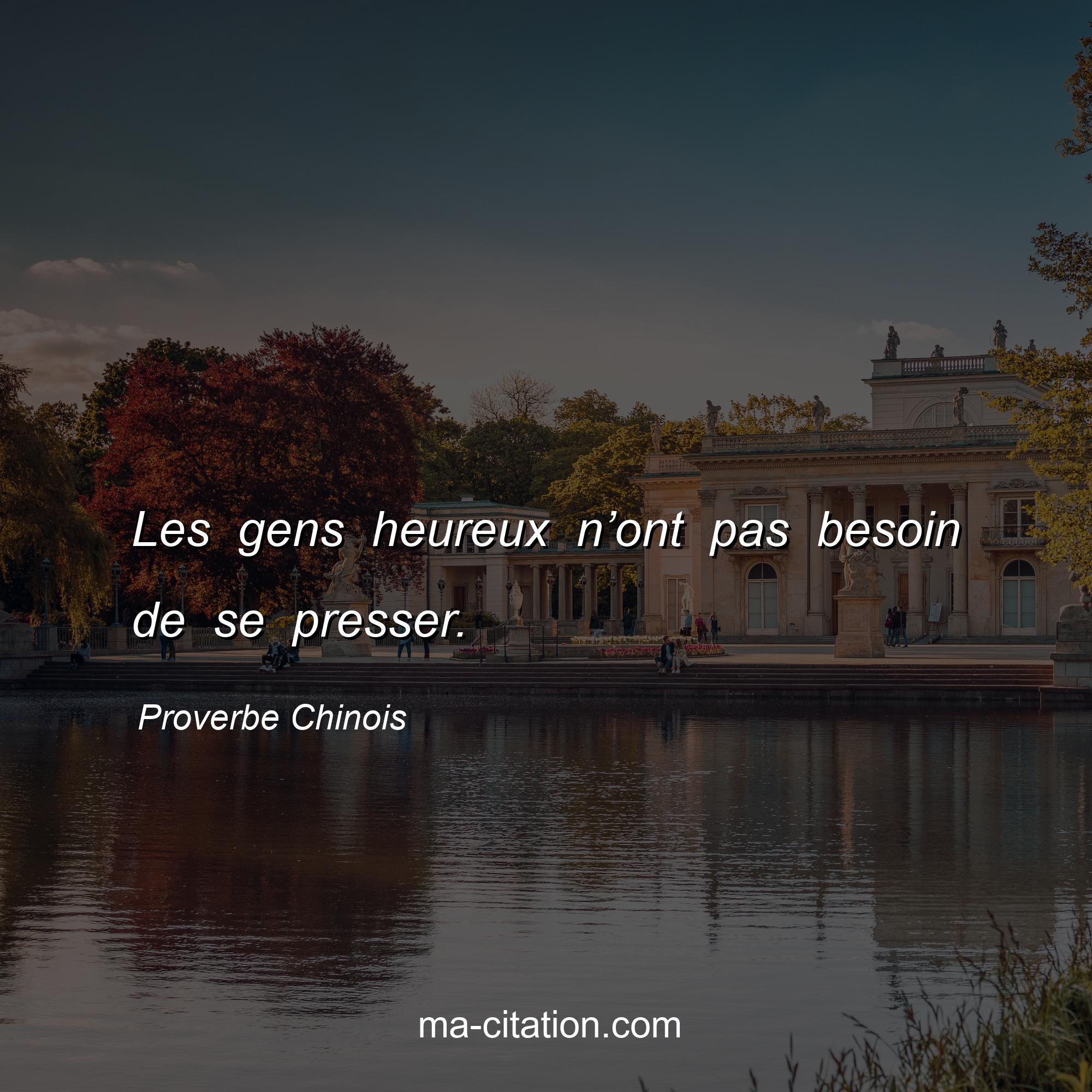 Proverbe Chinois sur la vie :Les gens heureux n’ont pas besoin de se presser.
