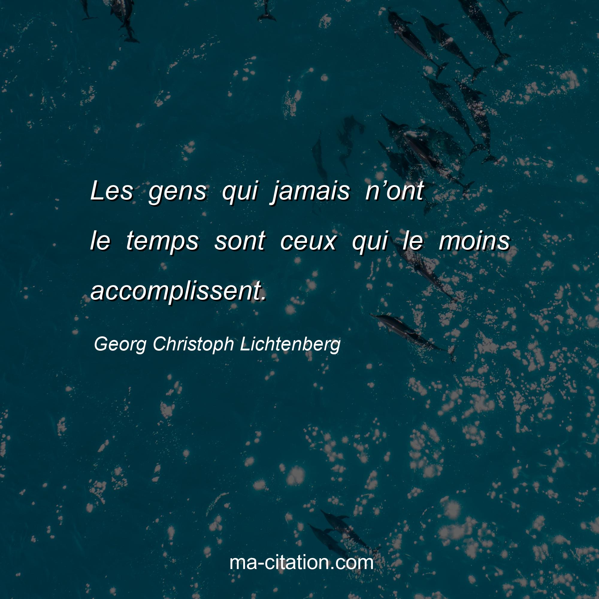 Citation sur la vie de Georg Christoph Lichtenberg :Les gens qui jamais n’ont le temps sont ceux qui le moins accomplissent.