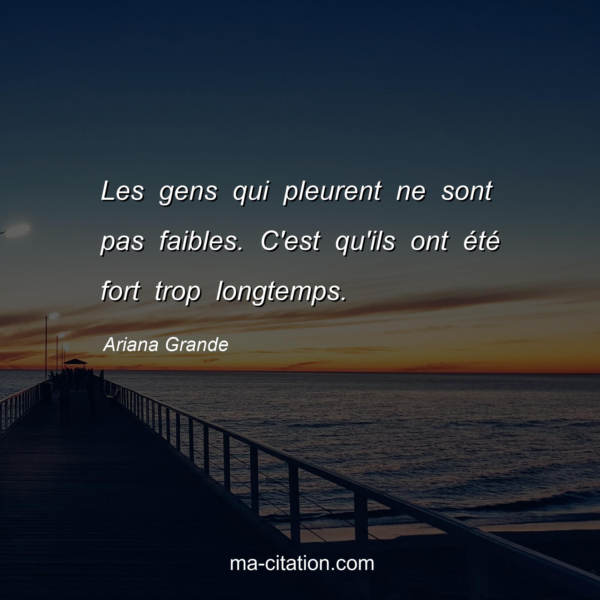Citation sur la vie d'Ariana Grande :Les gens qui pleurent ne sont pas faibles. C'est qu'ils ont été fort trop longtemps.