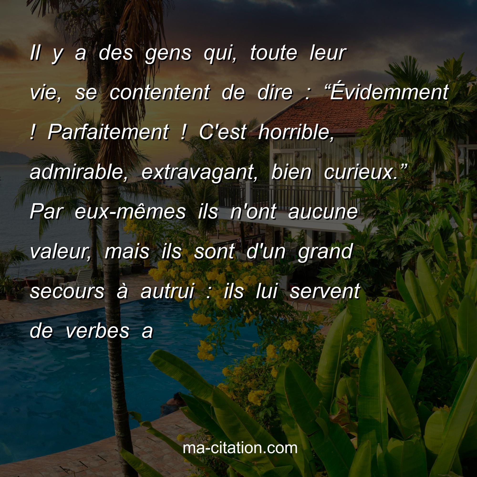 Il y a des gens qui, toute leur vie, se contentent de dire : “Évidemment ! Parfaitement ! C'est horrible, admirable, extravagant, bien curieux.†Par eux-mêmes ils n'ont aucune valeur, mais ils sont d'un grand secours à autrui : ils lui servent de verbes a