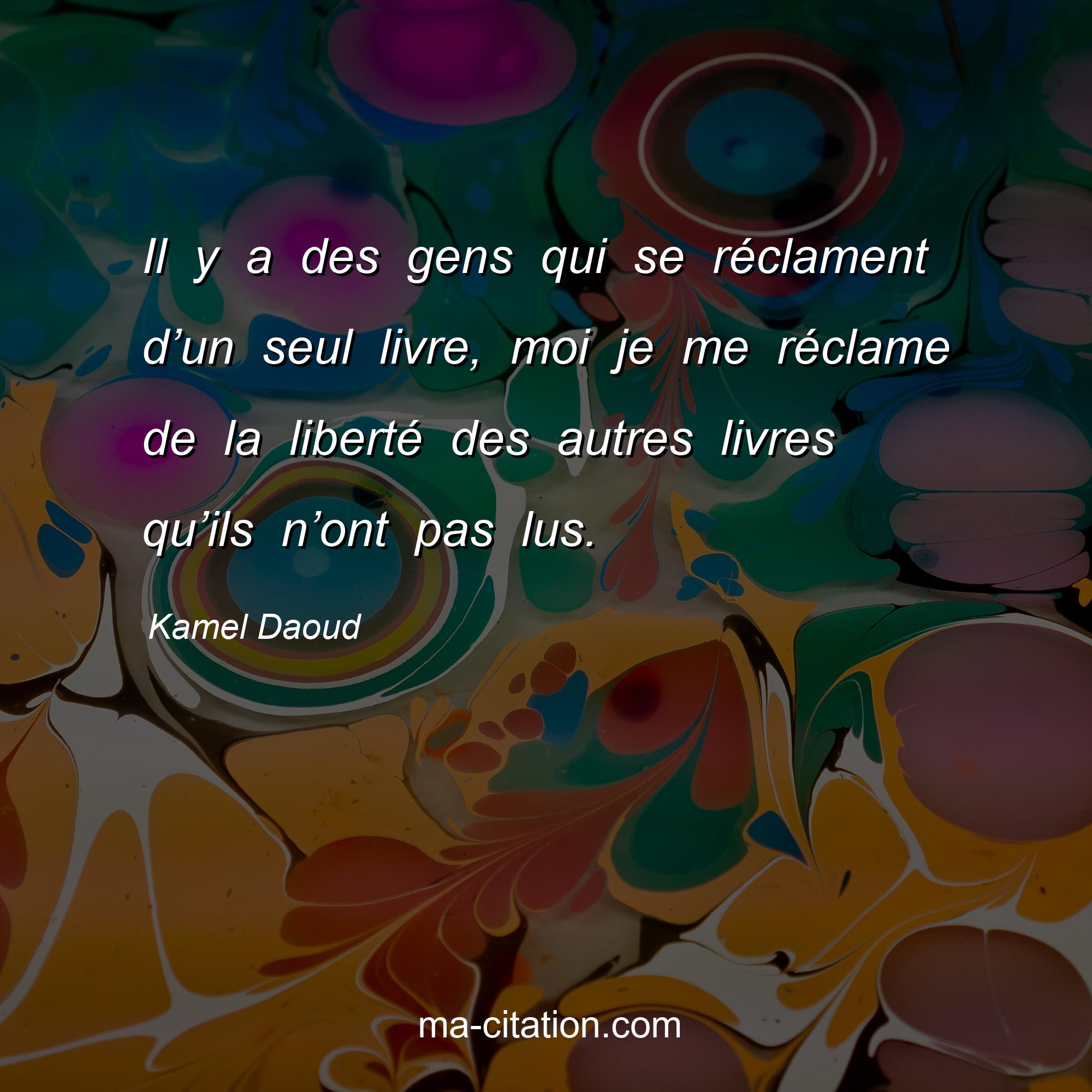 Citation sur la vie de Kamel Daoud :Il y a des gens qui se réclament d’un seul livre, moi je me réclame de la liberté des autres livres qu’ils n’ont pas lus.