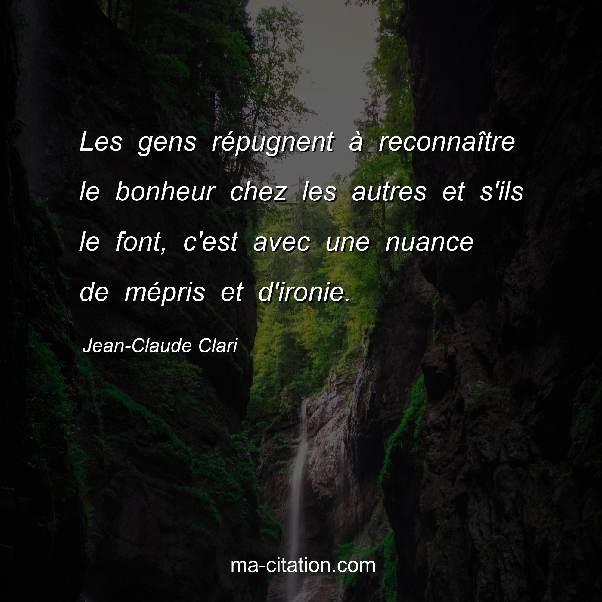 Jean-Claude Clari est l'auteur de la citation sur la vie "Les gens répugnent à reconnaître le bonheur chez les autres et s'ils le font, c'est avec une nuance de mépris et d'ironie.".
