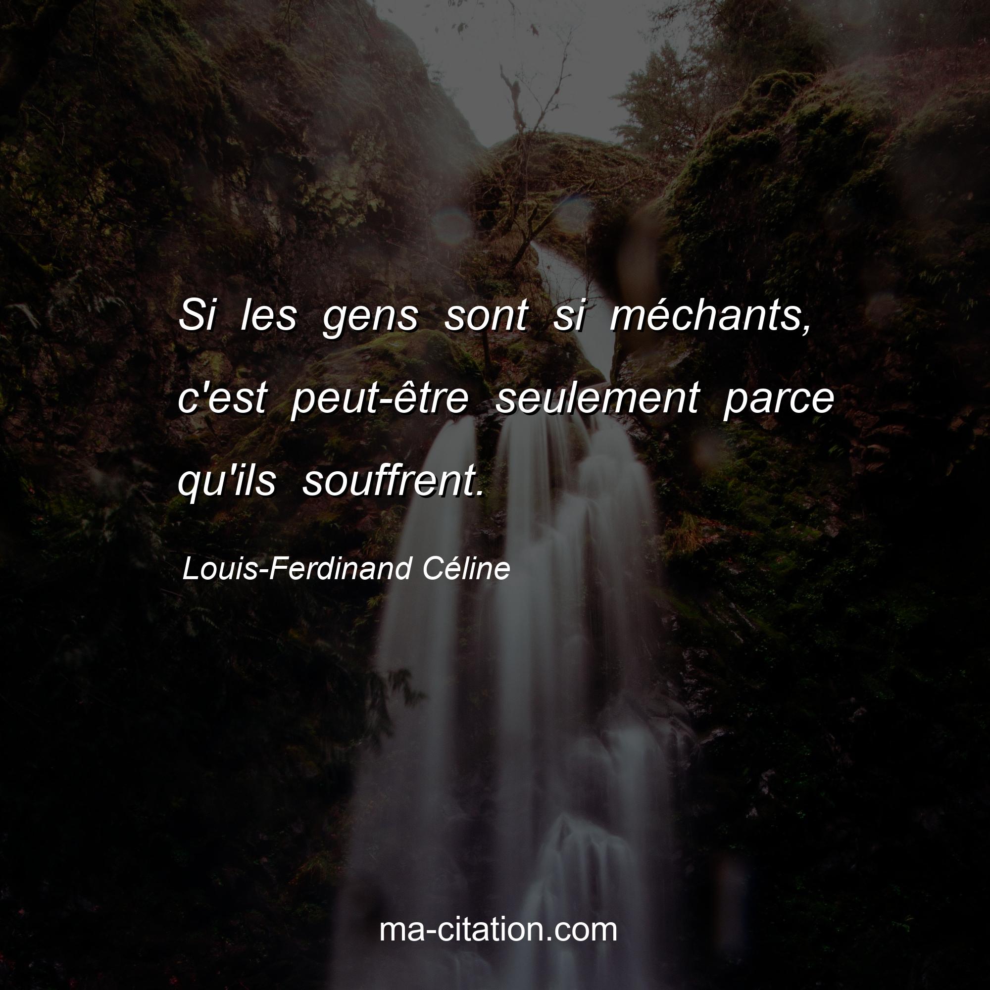 Citation sur la vie de Louis-Ferdinand Céline :Si les gens sont si méchants, c'est peut-être seulement parce qu'ils souffrent.