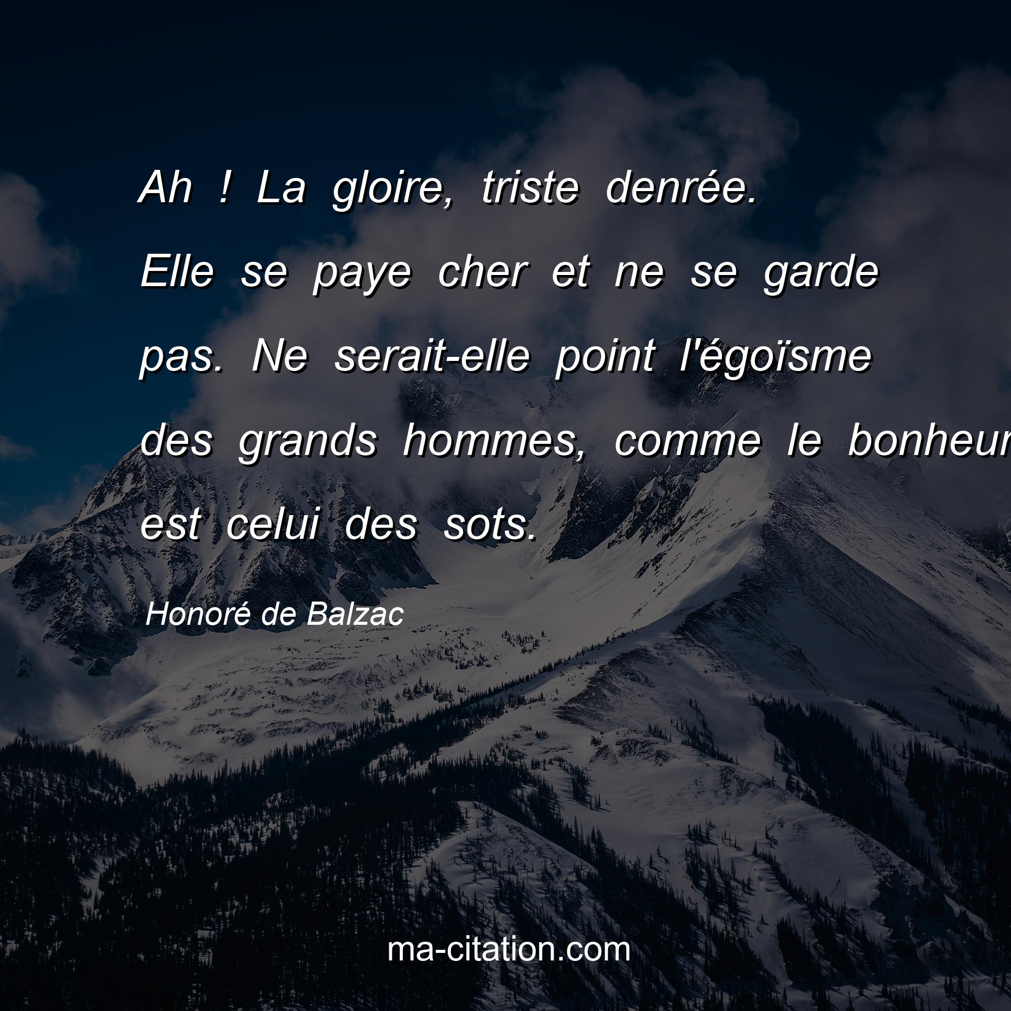 Citation sur la vie de Honoré de Balzac :Ah ! La gloire, triste denrée. Elle se paye cher et ne se garde pas. Ne serait-elle point l'égoïsme des grands hommes, comme le bonheur est celui des sots.