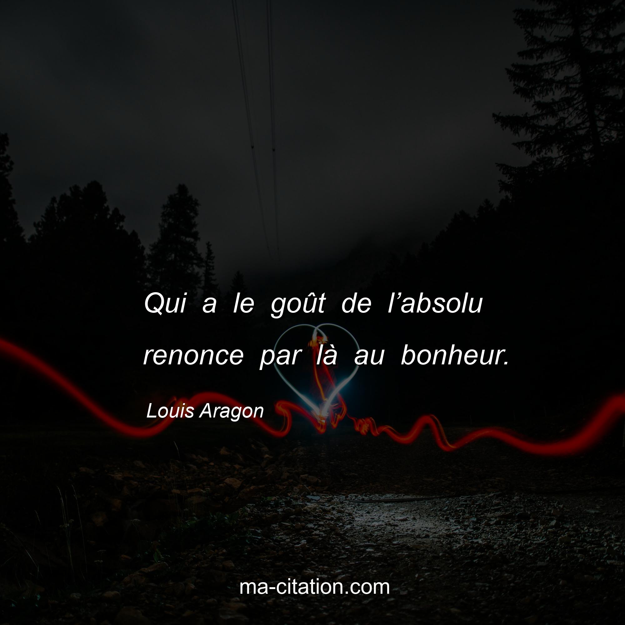 Louis Aragon est l'auteur de la citation sur la vie "Qui a le goût de l’absolu renonce par là au bonheur.".