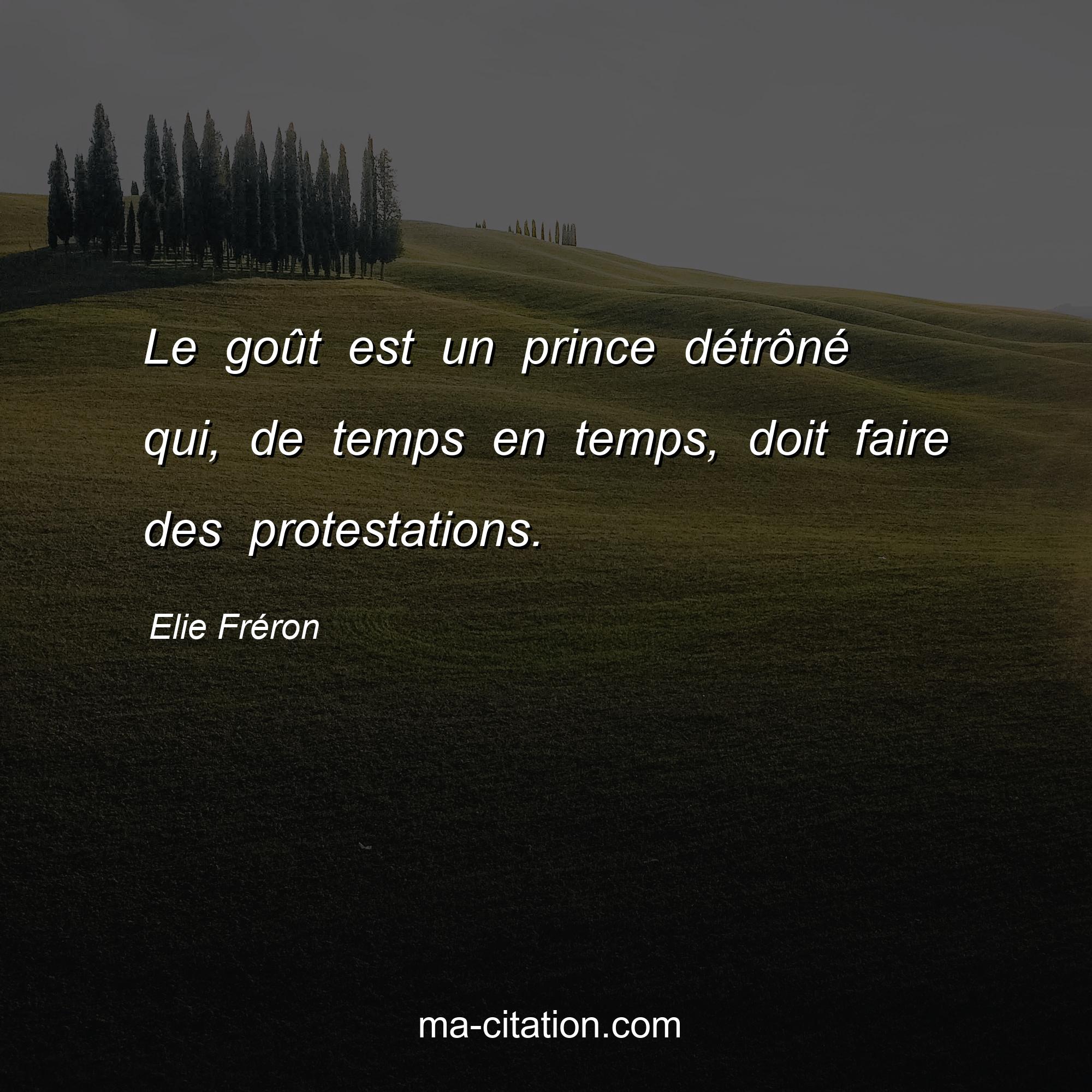 Citation sur la vie d'Elie Fréron :Le goût est un prince détrôné qui, de temps en temps, doit faire des protestations.