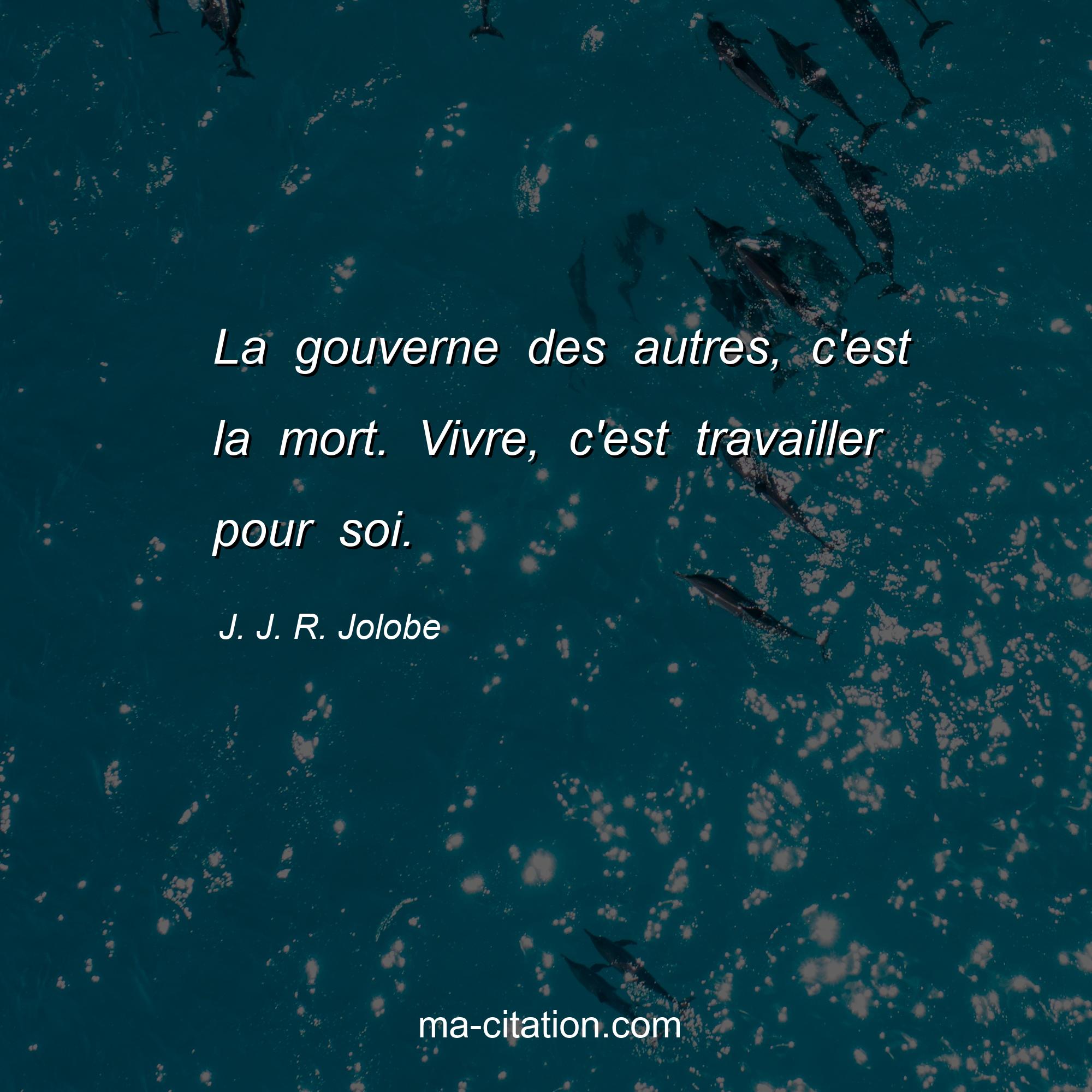 J. J. R. Jolobe est l'auteur de la citation sur la vie "La gouverne des autres, c'est la mort. Vivre, c'est travailler pour soi.".