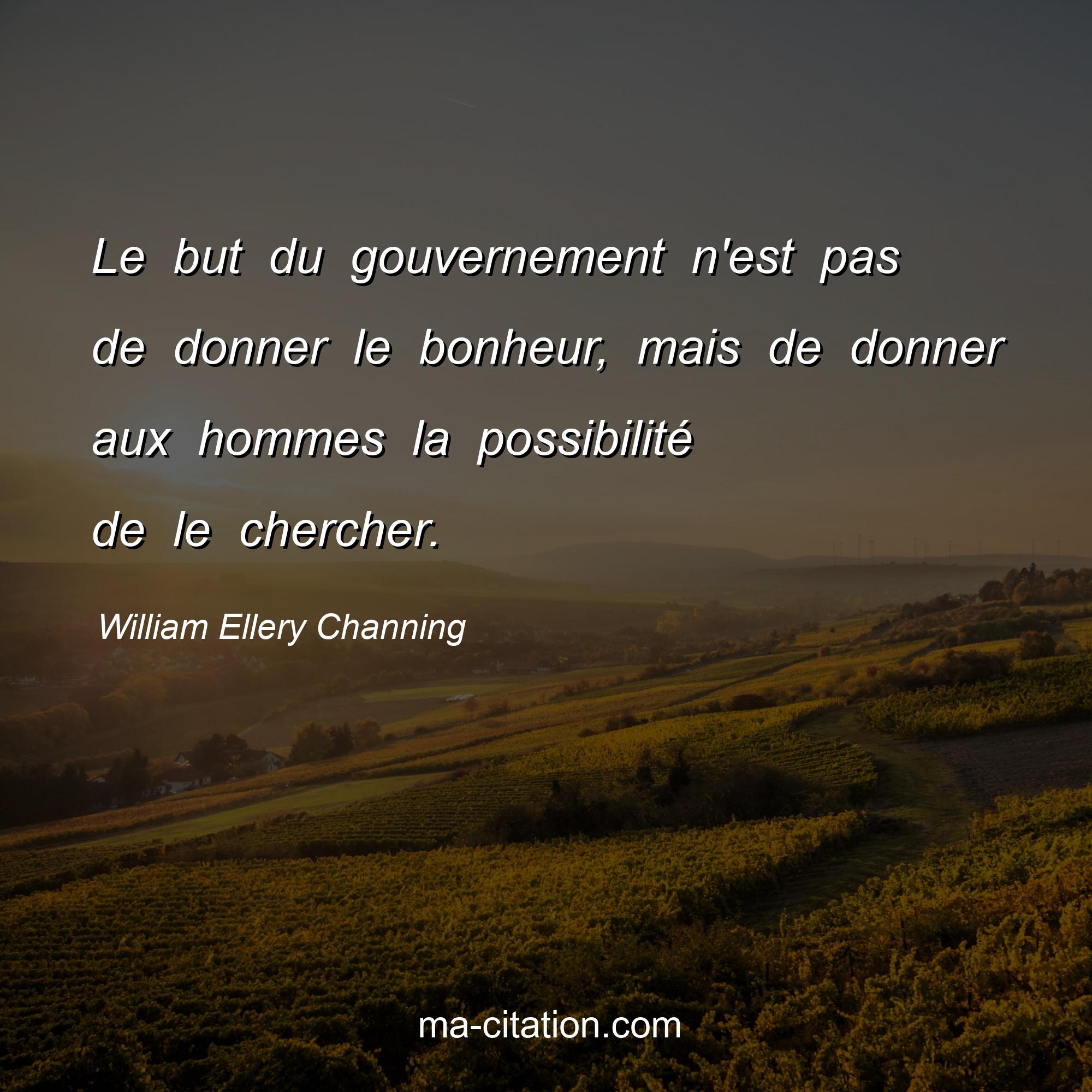 Citation sur la vie de William Ellery Channing :Le but du gouvernement n'est pas de donner le bonheur, mais de donner aux hommes la possibilité de le chercher.
