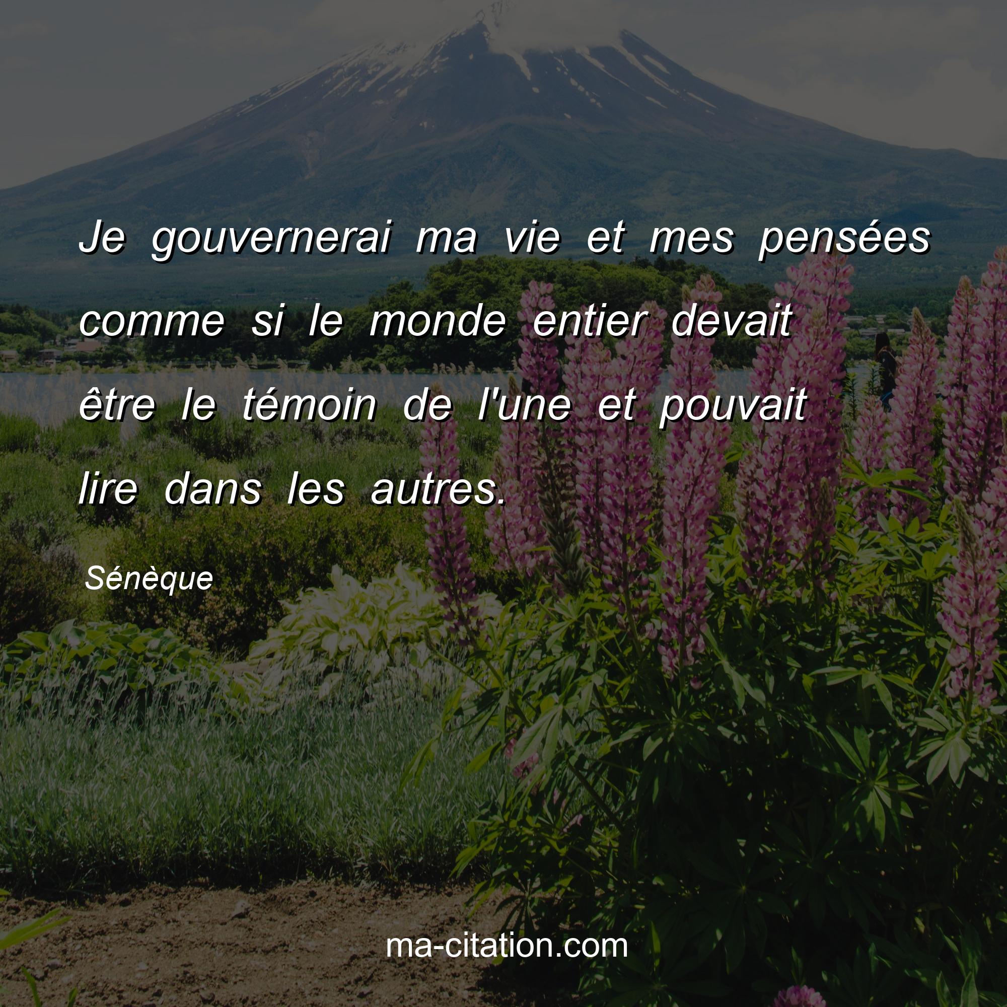 Citation sur la vie de Sénèque :Je gouvernerai ma vie et mes pensées comme si le monde entier devait être le témoin de l'une et pouvait lire dans les autres.