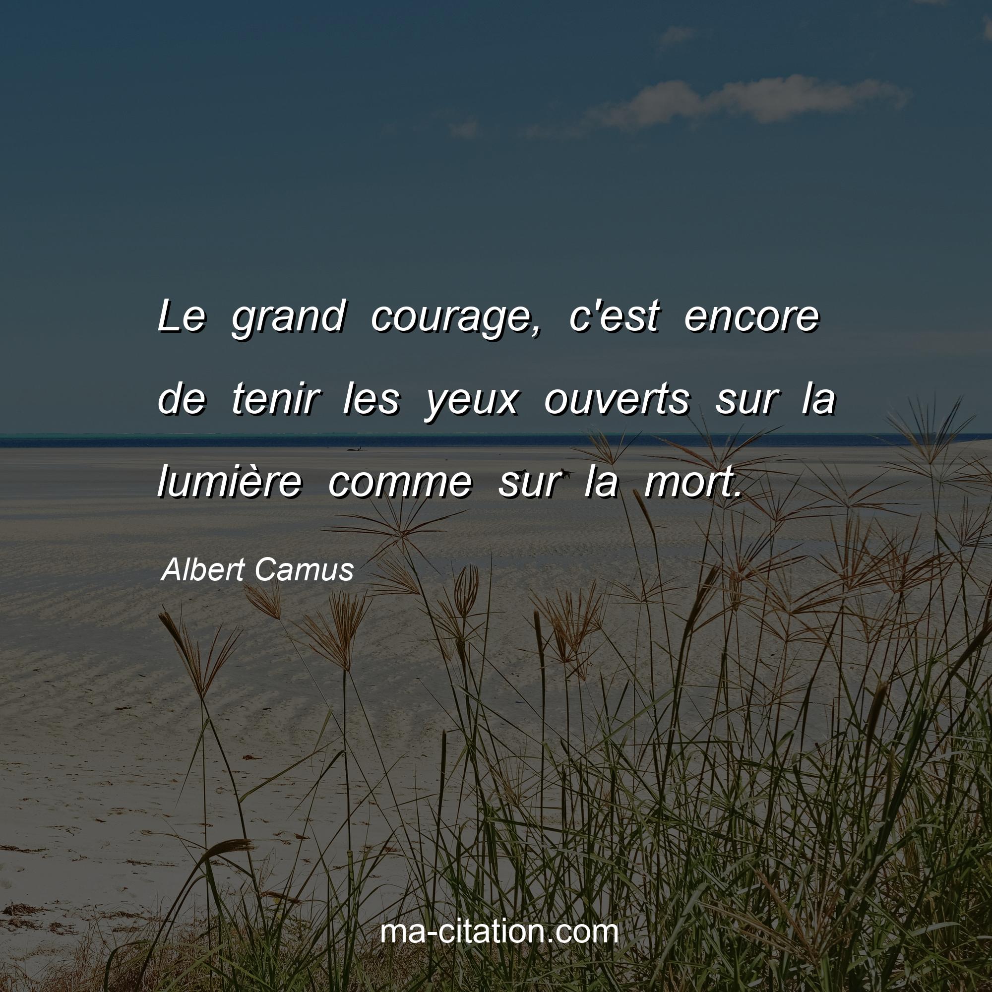 Citation sur la vie d'Albert Camus :Le grand courage, c'est encore de tenir les yeux ouverts sur la lumière comme sur la mort.