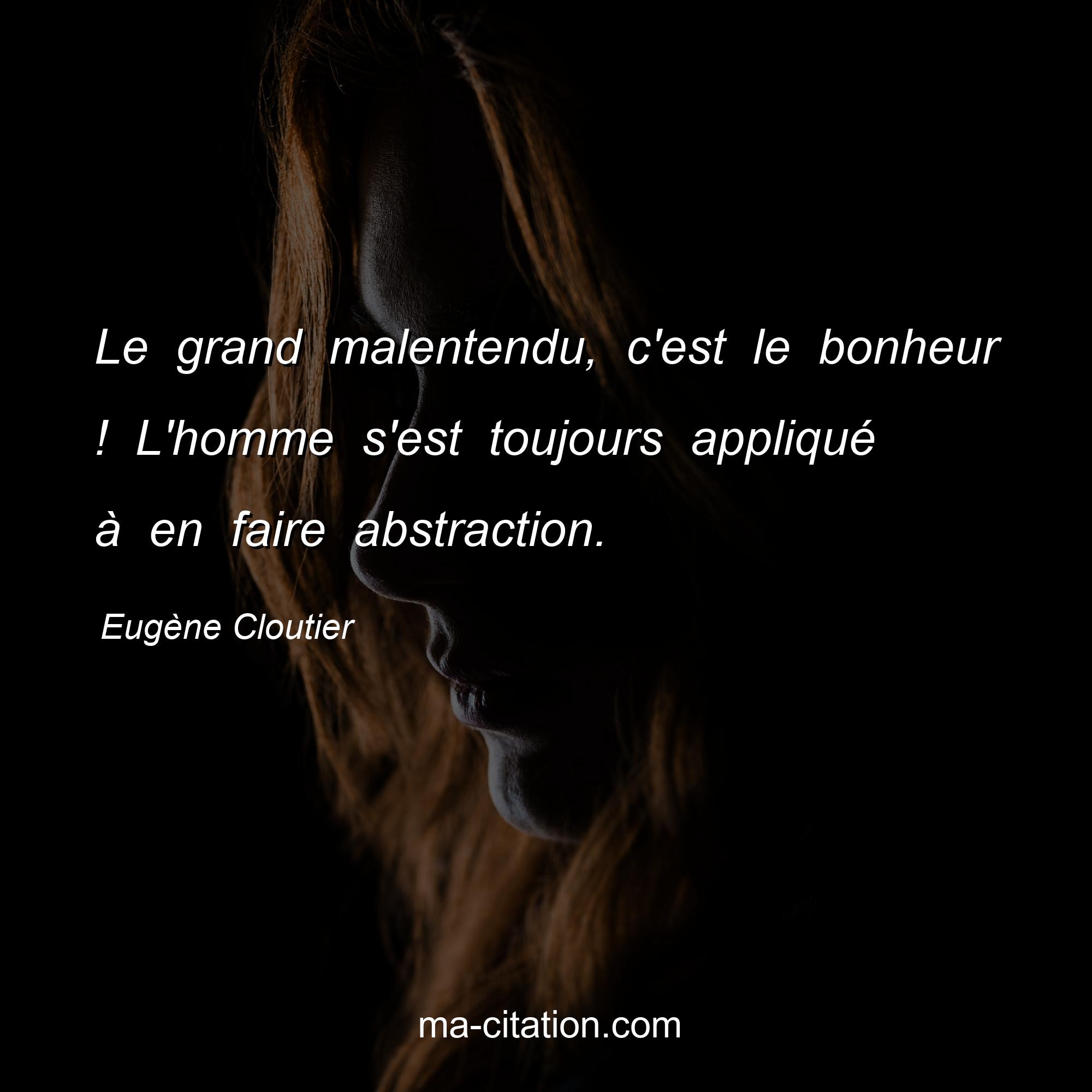 Citation sur la vie d'Eugène Cloutier :Le grand malentendu, c'est le bonheur ! L'homme s'est toujours appliqué à en faire abstraction.