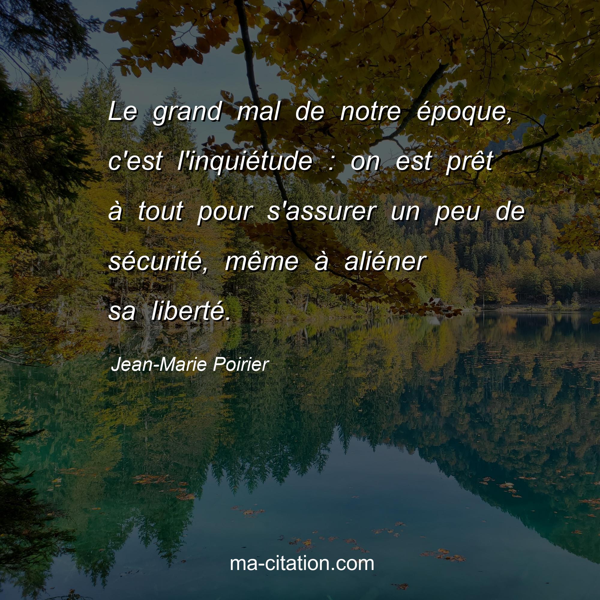 Jean-Marie Poirier est l'auteur de la citation sur la vie "Le grand mal de notre époque, c'est l'inquiétude : on est prêt à tout pour s'assurer un peu de sécurité, même à aliéner sa liberté.".